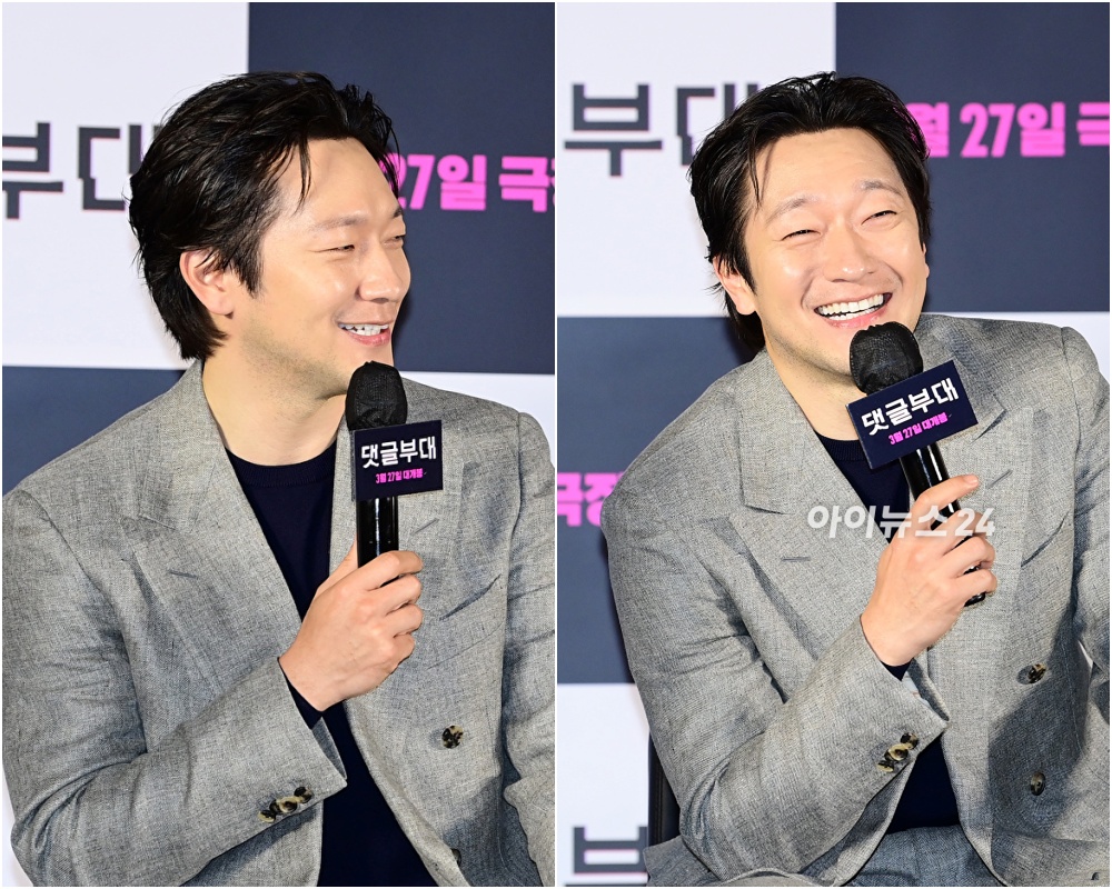 손석구는 4일 오전 서울 롯데시네마건대입구에서 진행된 영화 '댓글부대'(감독 안국진) 제작보고회에서 "원작 소설이 있다. 작가님이 원래 기자 출신이라 감독님과 한번 뵙기도 했다"라며 "기자분들은 특성이 어떤 것이 있는지 공부했다"라고 말했다.
