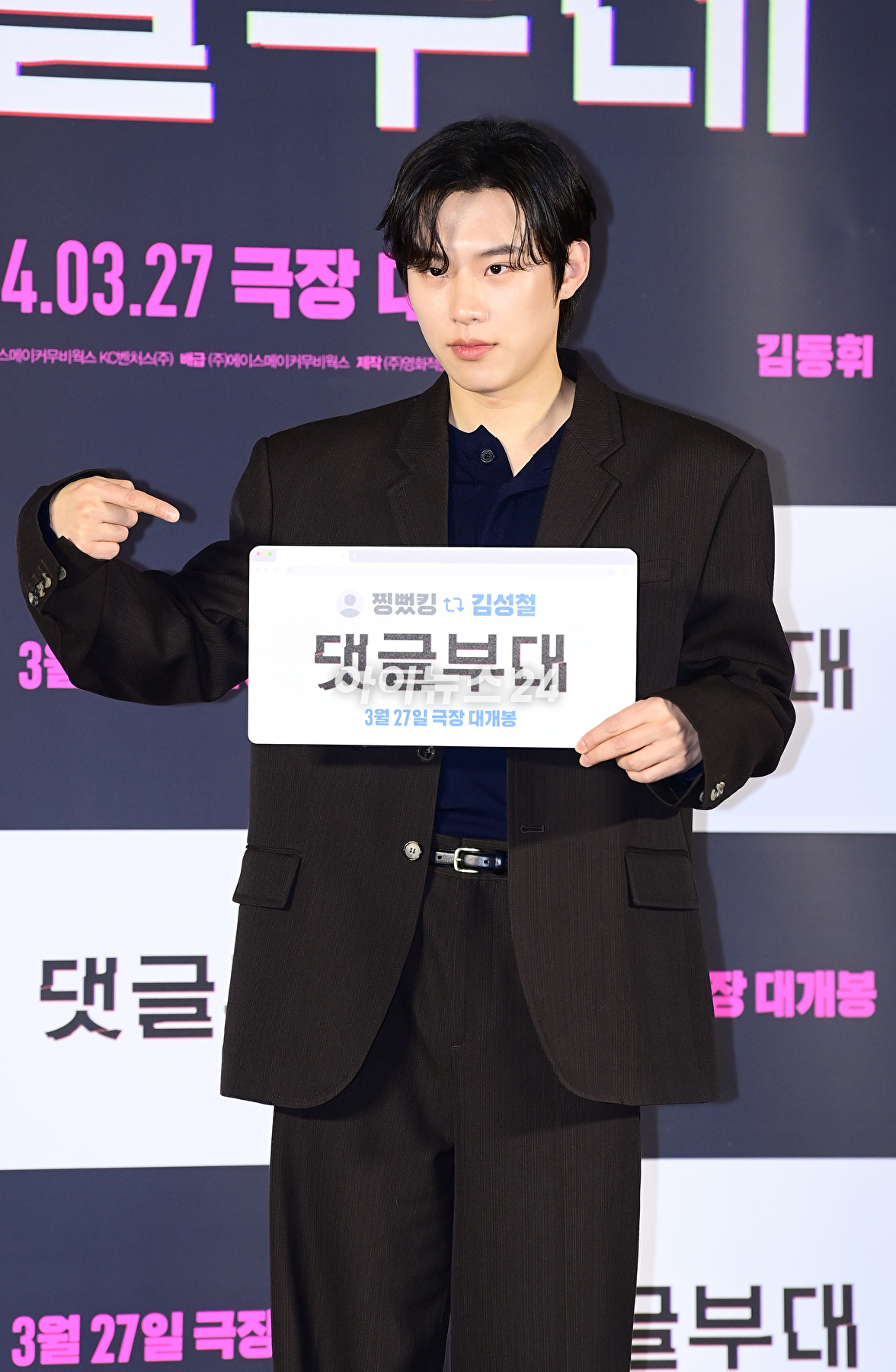 김성철은 4일 오전 서울 롯데시네마건대입구에서 진행된 영화 '댓글부대'(감독 안국진) 제작보고회에서 "작년에 촬영하면서 개봉될 때쯤 제작보고회에서 캐릭터 이름인 '찡뻤킹'을 잘 얘기하기 위해 준비를 많이 했다"라고 말했다.