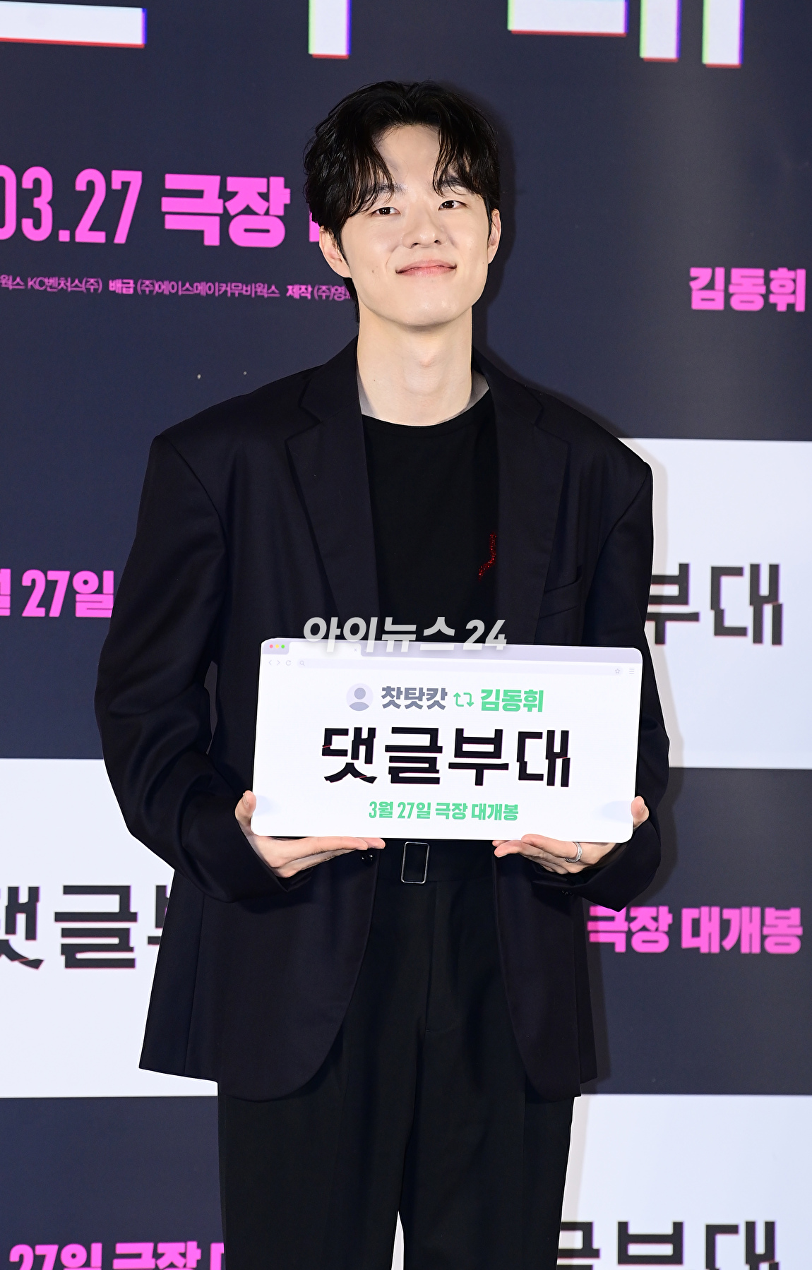 배우 김동휘가 4일 오전 서울 광진구 자양동 롯데시네마 건대입구에서 열린 영화 '댓글부대'(감독 안국진) 제작보고회에 참석하고 있다. 손석구, 김성철, 김동휘, 홍경의 만남으로 화제를 모으고