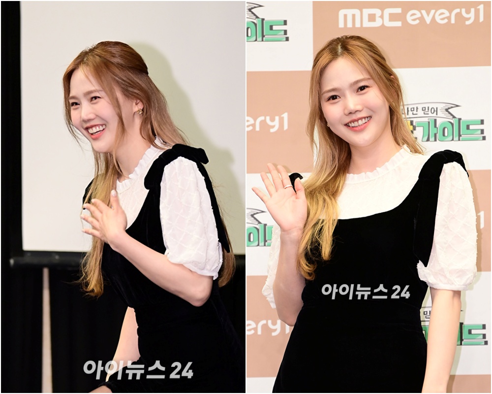 오마이걸 효정이 18일 오후 서울 마포구 상암동 스탠포드호텔에서 열린 MBC에브리원 '위대한 가이드' 제작발표회에 참석하고 있다. 정규 편성 후 첫 방송을 앞두고 있는 '위대한 가이드'는 한국