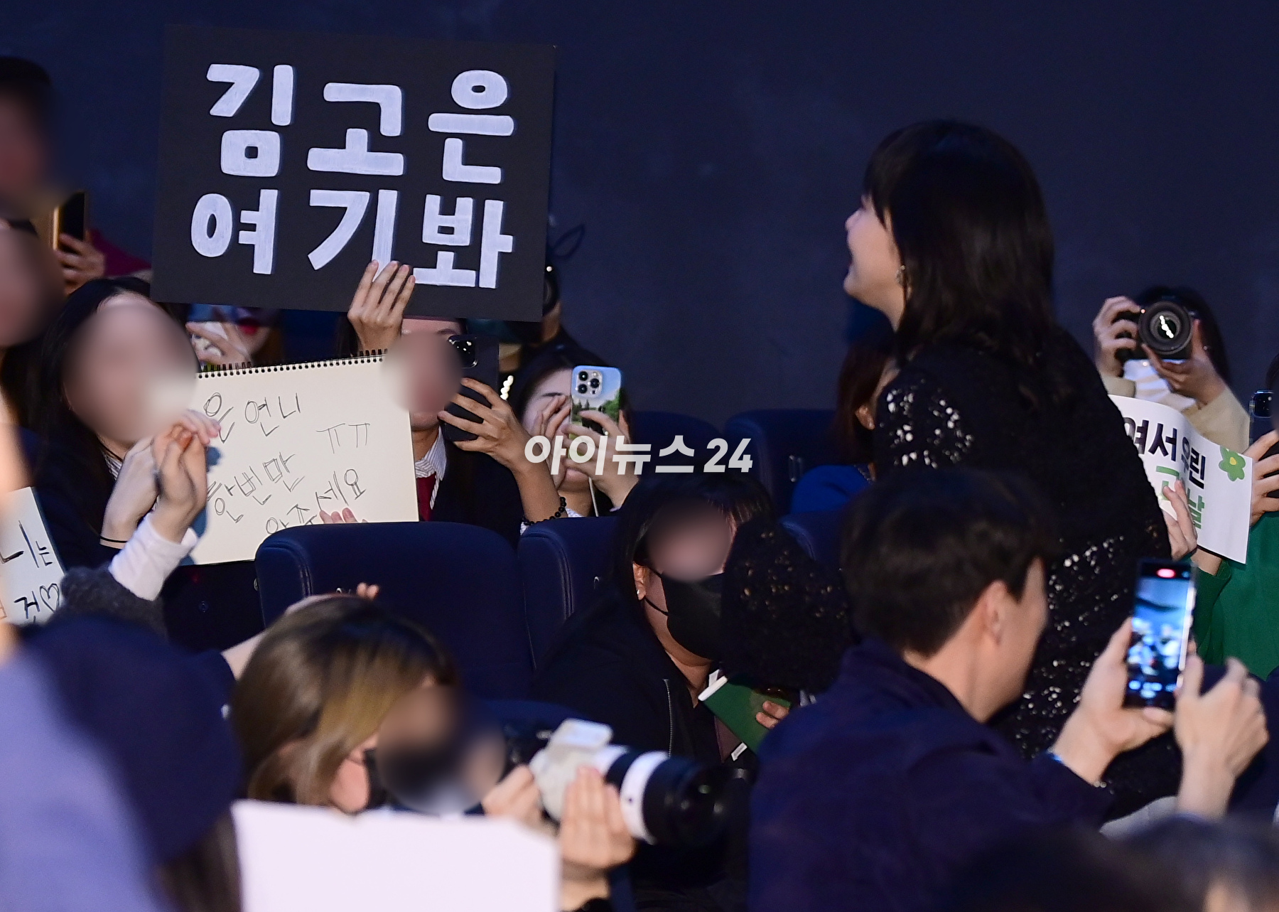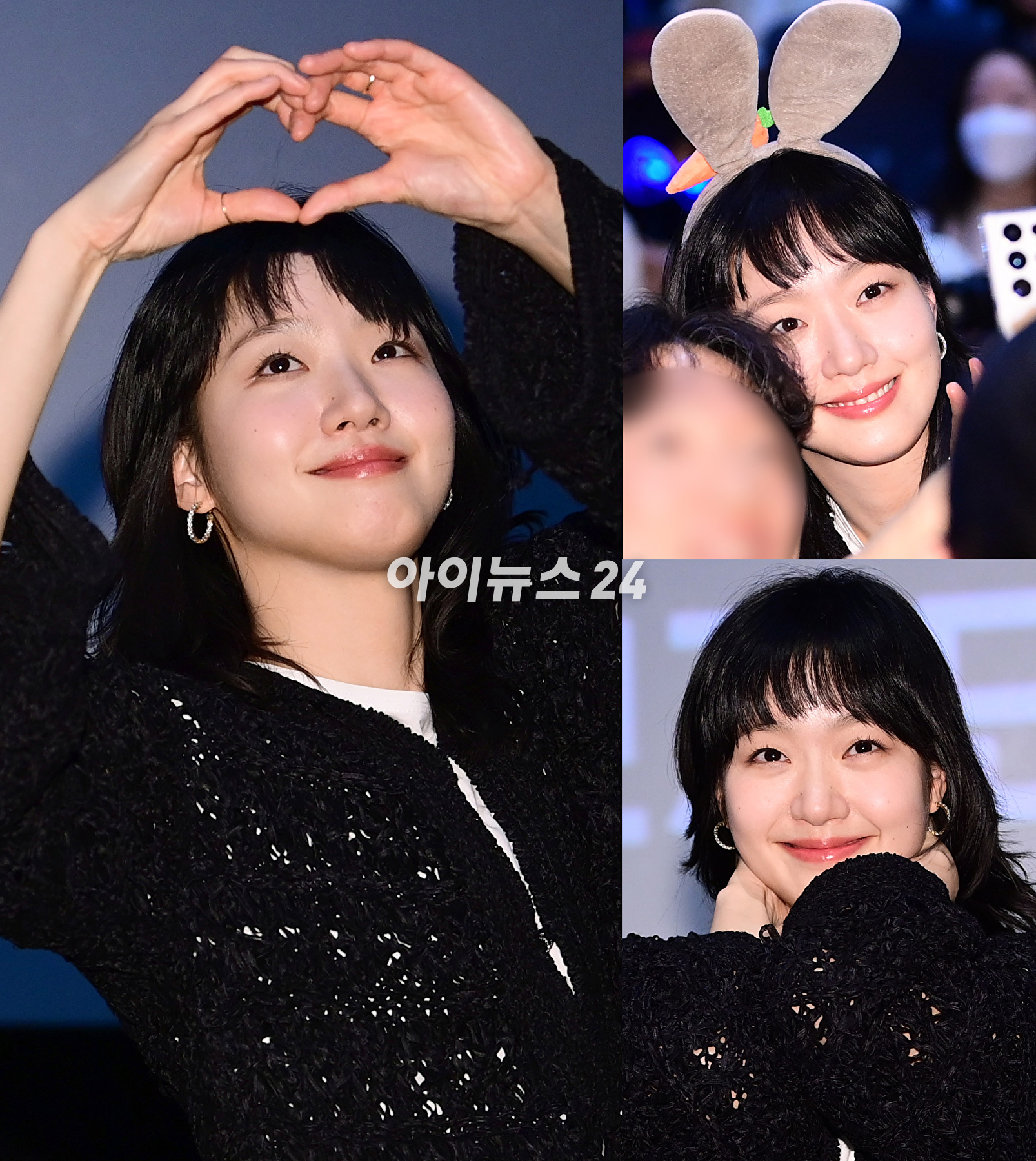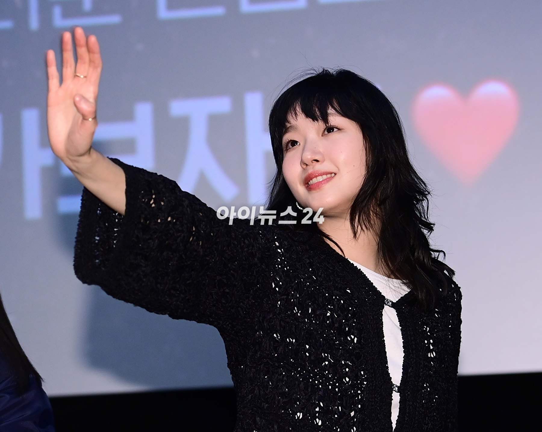 배우 김고은이 23일 오후 서울 롯데시네마 건대입구에서 열린 영화 '파묘'(감독 장재현) 흥행 감사 무대인사를 갖고 있다.