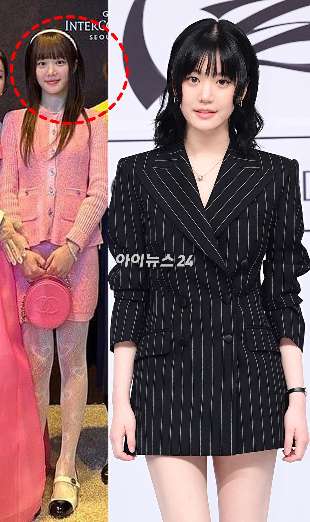 동생 이다인의 결혼식에 올 핑크 셋업 패션으로 등장해 '민폐 하객룩'으로 논란의 중심에 섰던 이유비는 이날 포멀한 스트라이프 자켓 원피스를 입었다. 이유비는 최근 SBS 예능 '강심장VS'에 출연해 '민폐 하객룩'에 대해 동생 이다인이 골라준 옷이라고 해명했다.