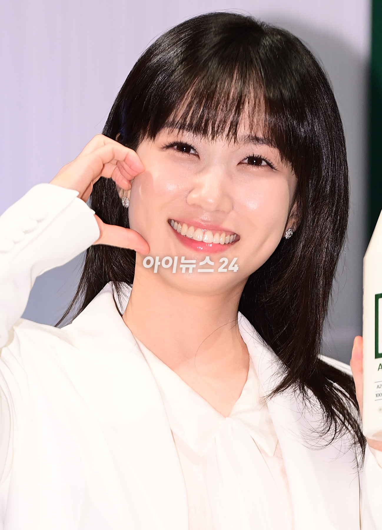 배우 박은빈이 15일 오전 서울 용산구 그랜드하얏트서울에서 열린 '우유로 세상을 건강하게' 서울우유 A2+출시 행사에 제품 모델로 참석해 포토타임을 갖고 있다.