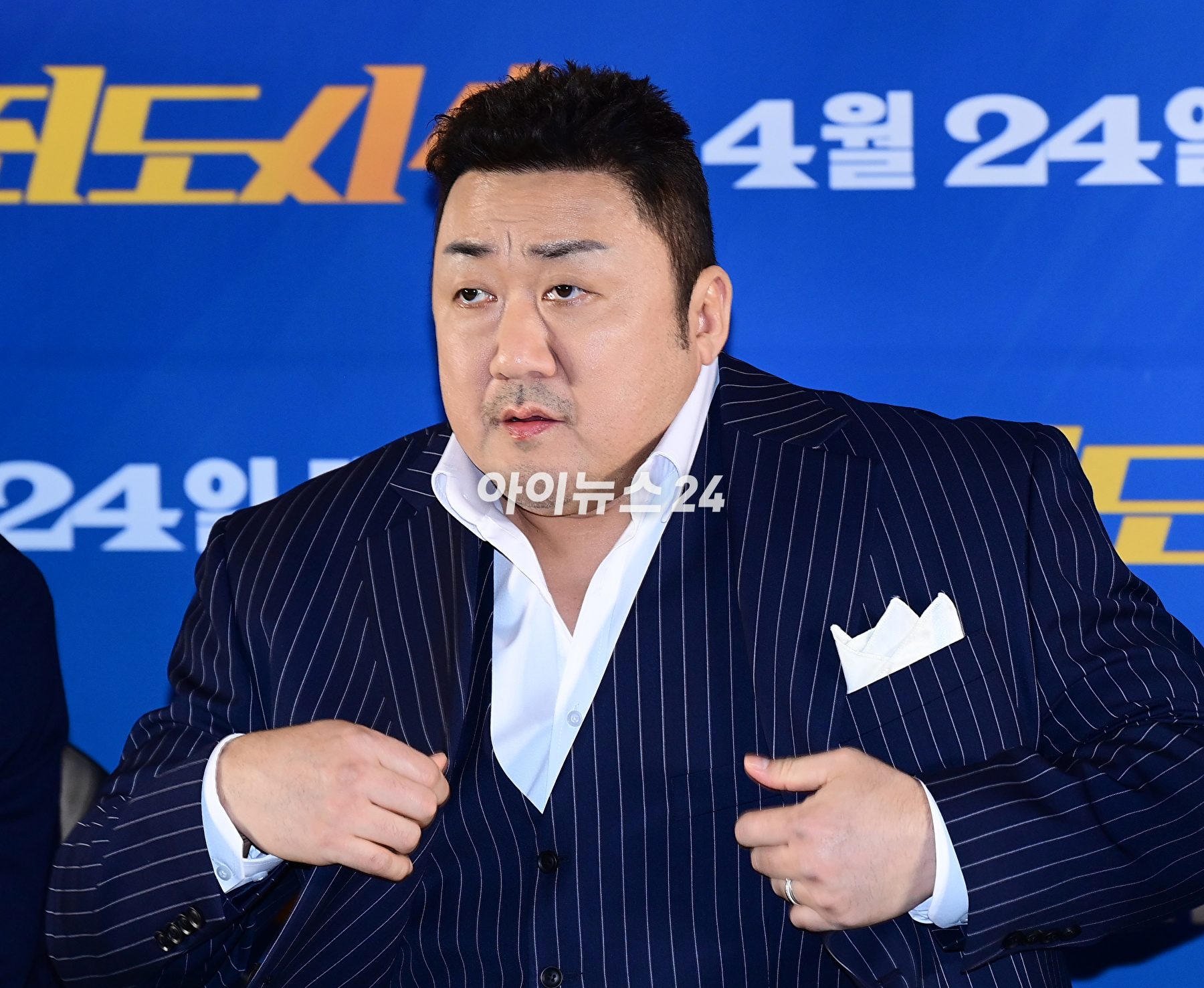 배우 마동석이 15일 오후 서울 강남구 삼성동 메가박스 코엑스에서 열린 영화 '범죄도시4'(감독 허명행) 언론시사회에 참석하고 있다. 올해 기대작 중 하나로 꼽히는 '범죄도시4'는 괴물형사 마석