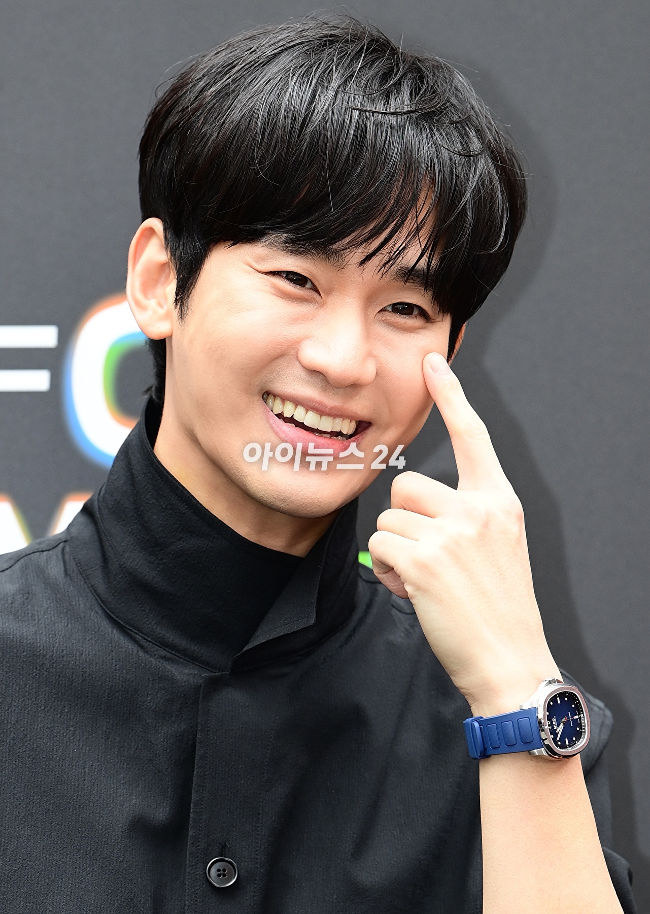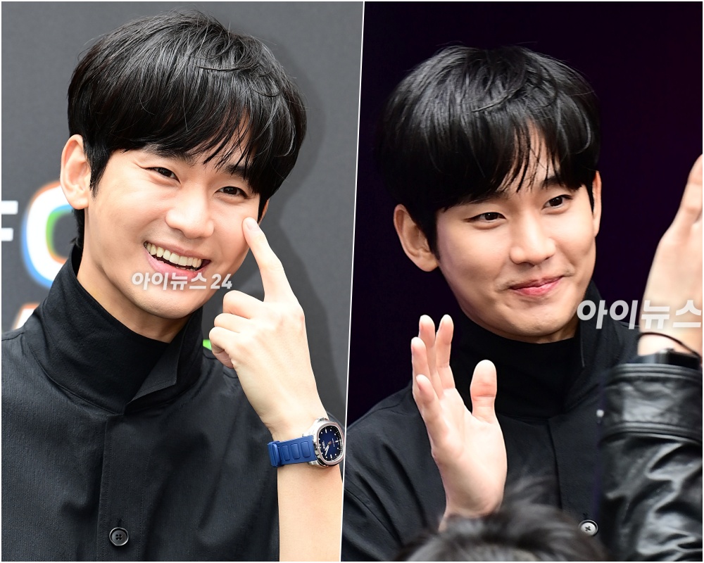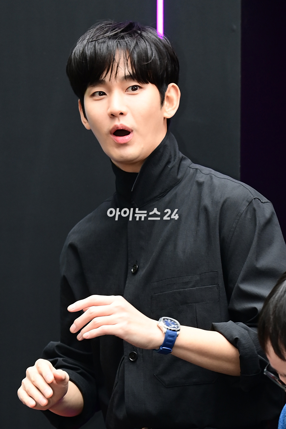 배우 김수현이 25일 오전 서울 성동구 성수동 비컨 스튜디오에서 열린 미도 포토콜 행사에 참석하고 있다.