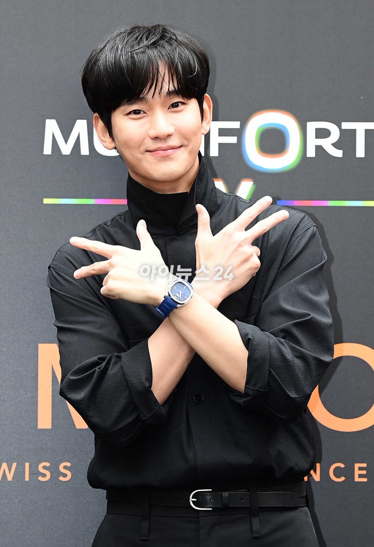 배우 김수현이 25일 오전 서울 성동구 성수동 비컨 스튜디오에서 열린 미도 포토콜 행사에 참석하고 있다.