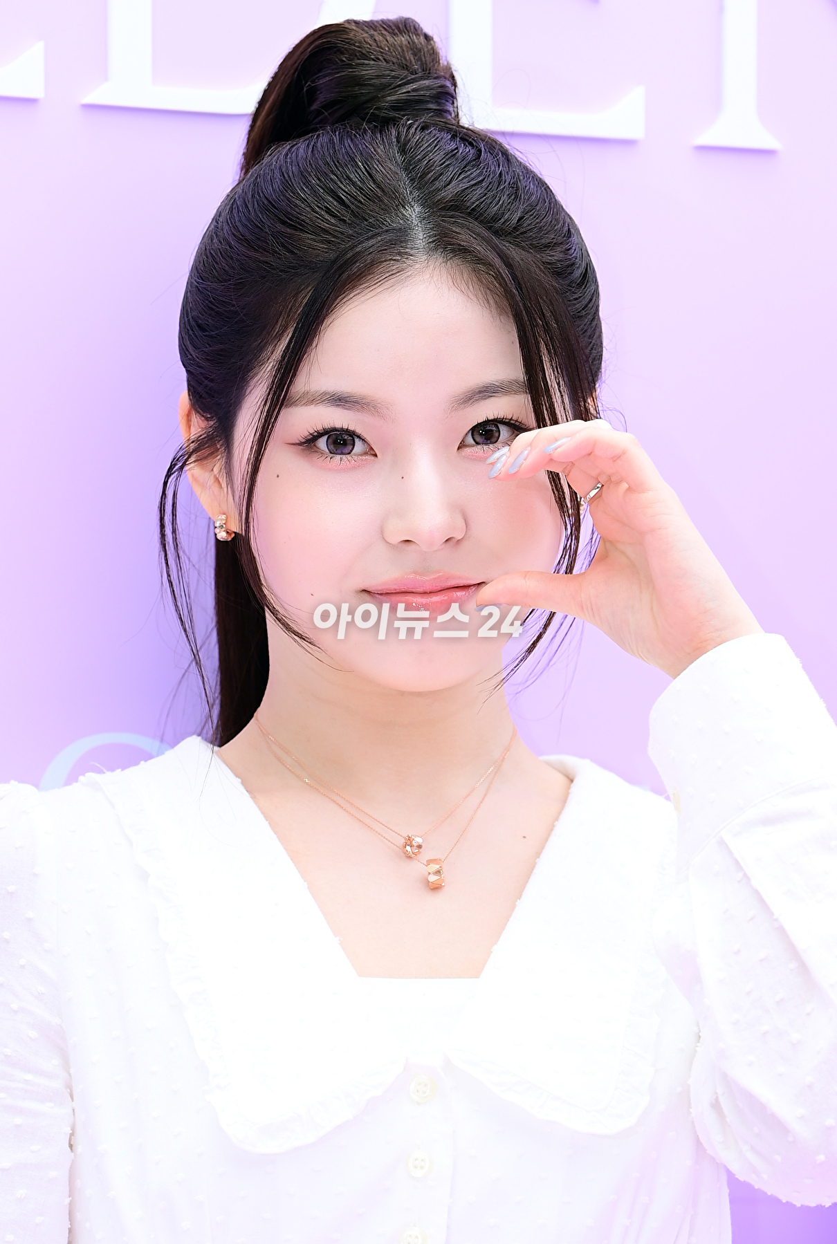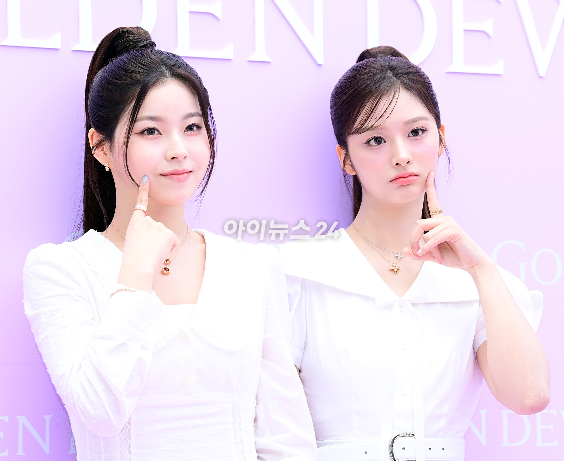 그룹 엔믹스 규진과 설윤이 25일 오전 서울 성동구 성수동 인근에서 열린 골든듀 창립 35주년 기념 팝업행사에 참석하고 있다. [사진=정소희 기자]