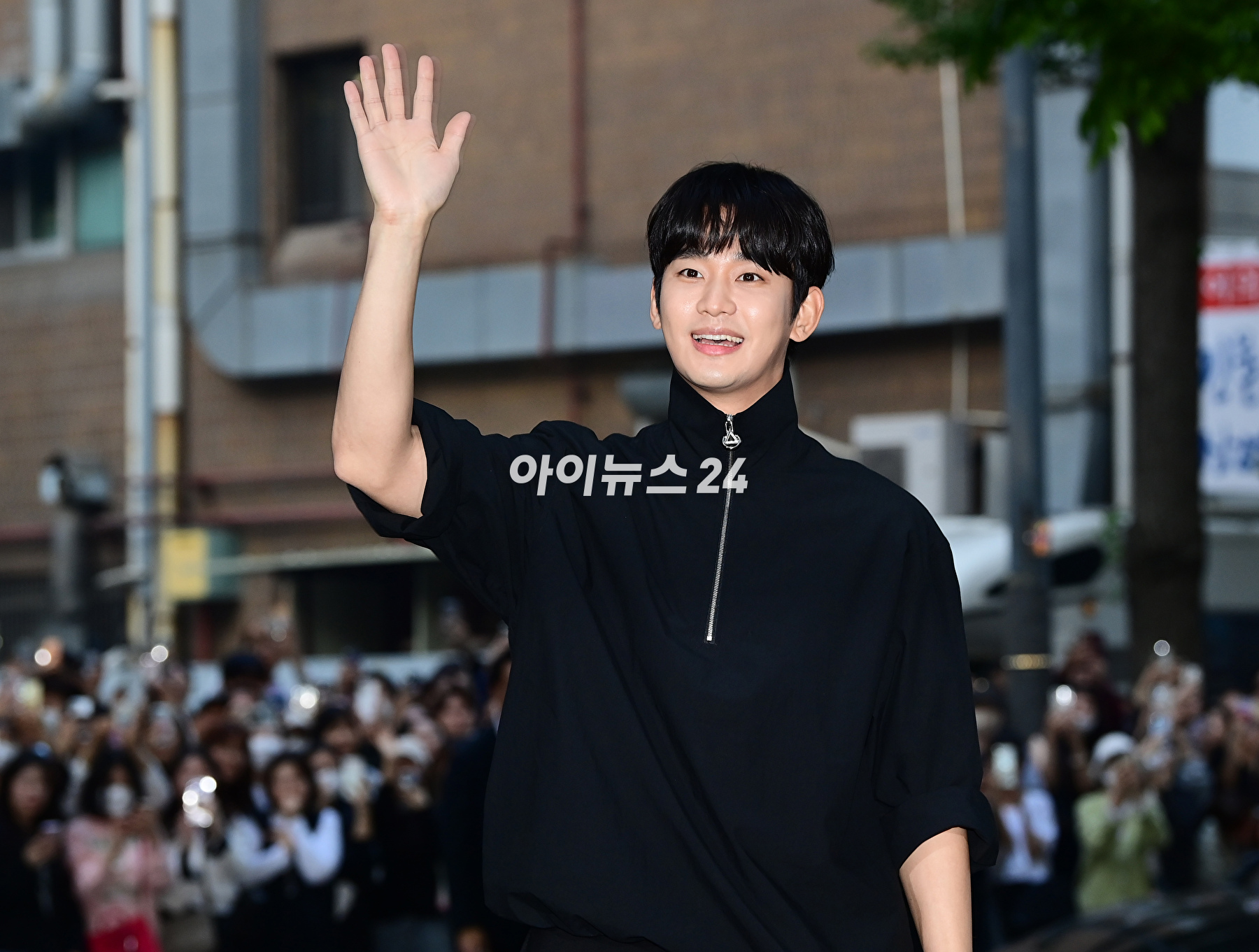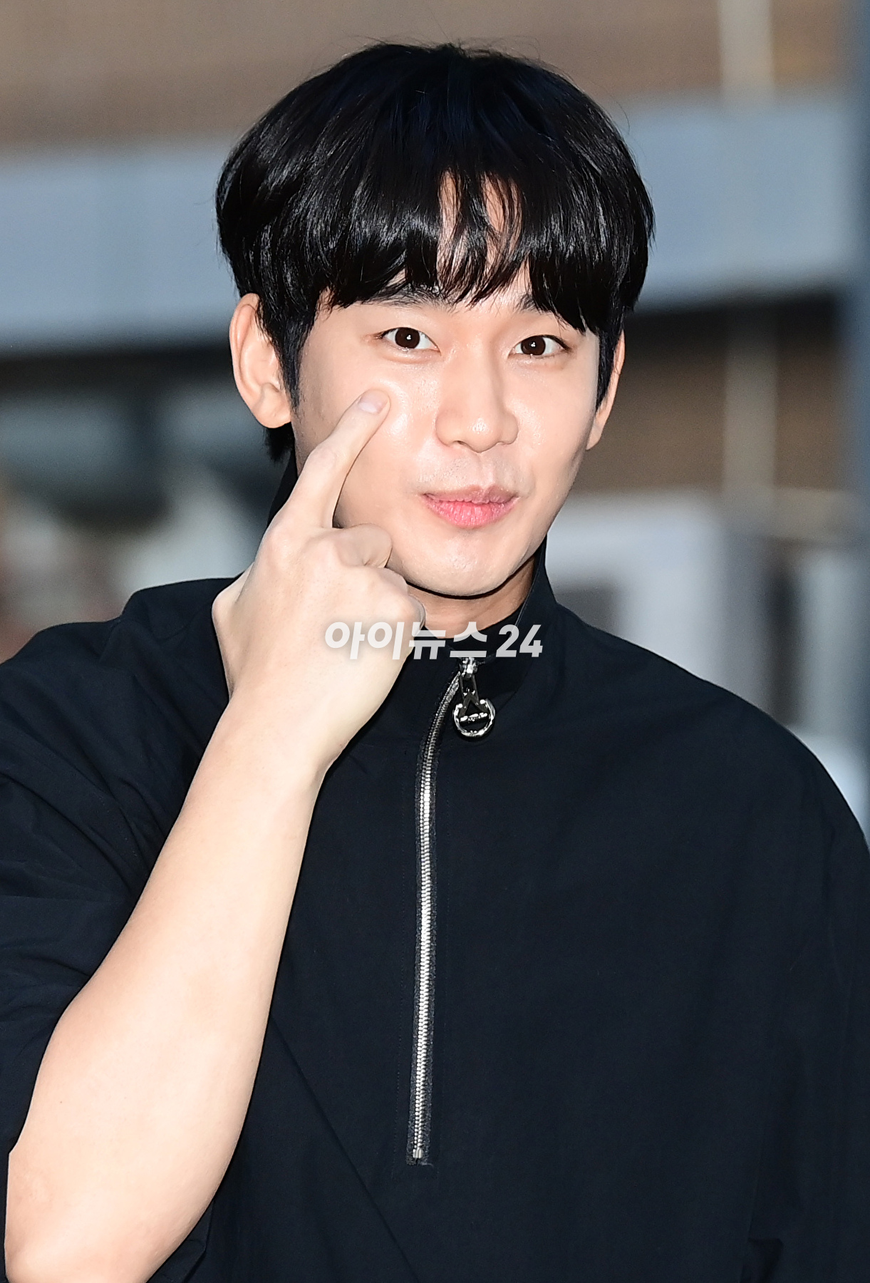 배우 김수현이 27일 오후 서울 영등포구 여의도의 한 음식점에서 열린 tvN 토일 드라마 '눈물의 여왕' 종방연에 참석하고 있다. '눈물의 여왕'은 퀸즈 그룹 재벌 3세 겸 백화점의 여왕 홍해인(김지