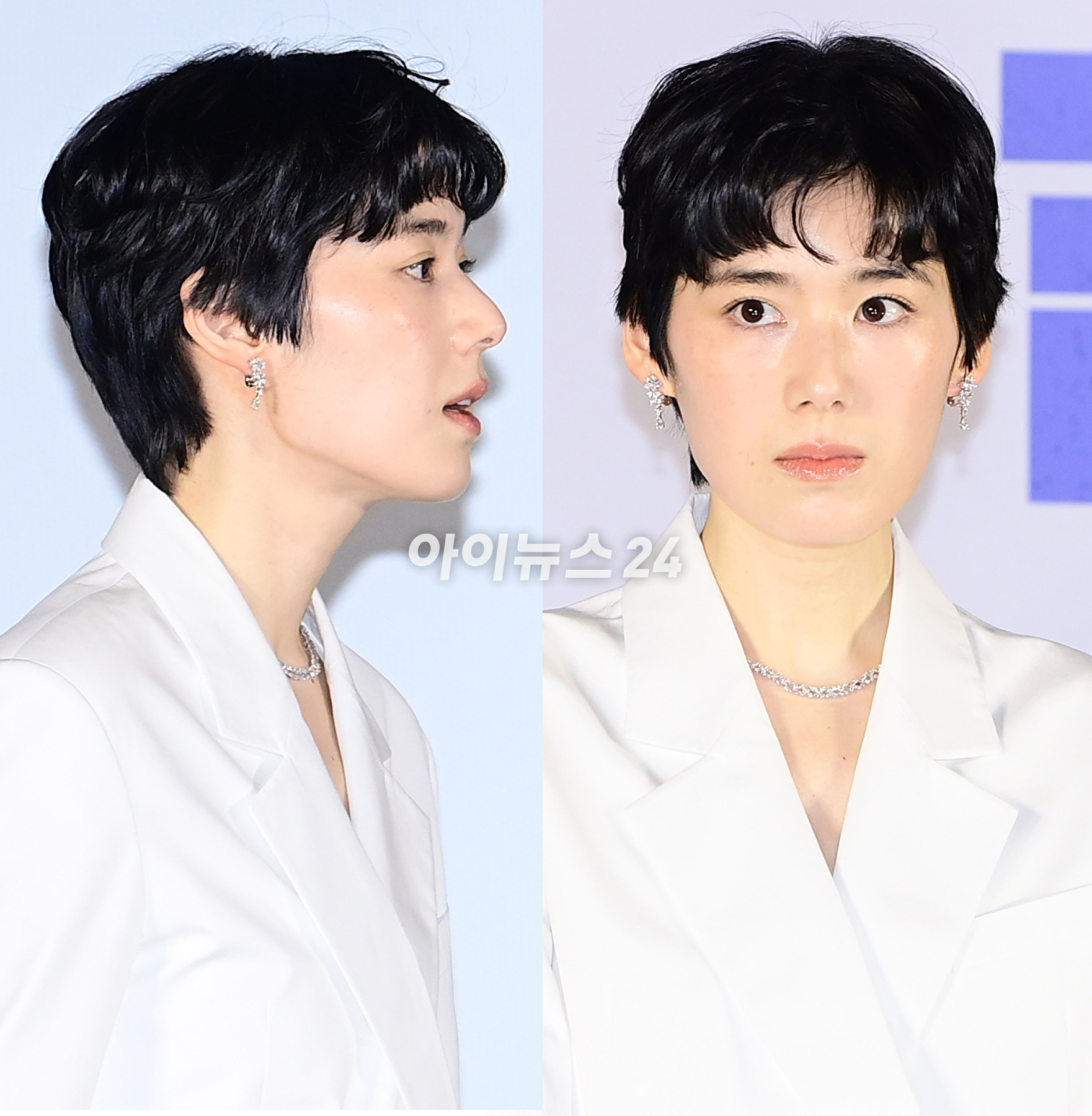 최근 디자이너 겸 화가 김충재와 공개 열애를 시작해 화제를 모은 정은채는 이날 숏컷에 화이트 패션으로 색다른 매력을 선보였다.