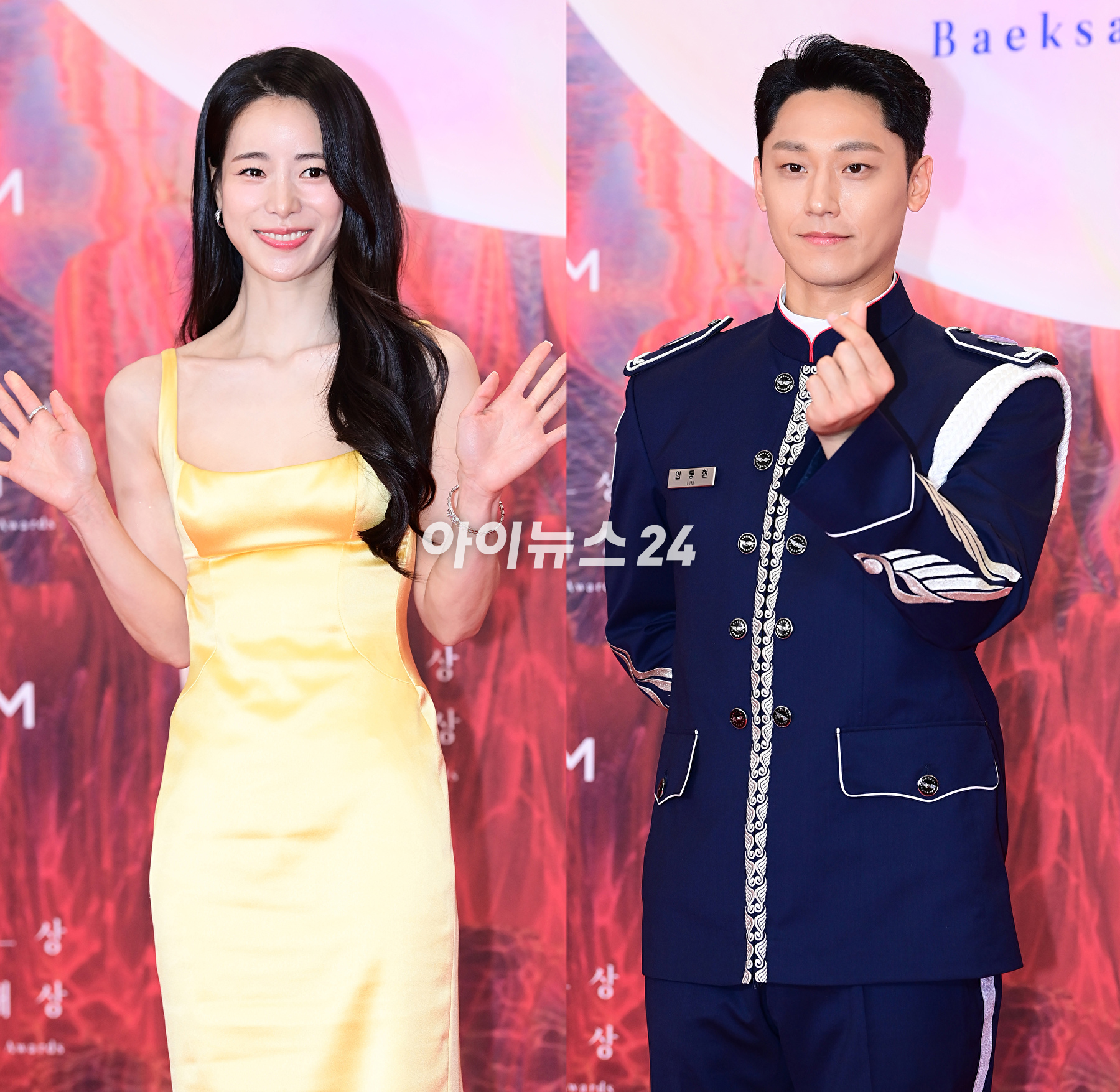 배우 이도현과 임지연이 7일 오후 서울 삼성동 코엑스에서 열린 제60회 백상예술대상 시상식에 참석해 레드카펫을 밟고 있다.