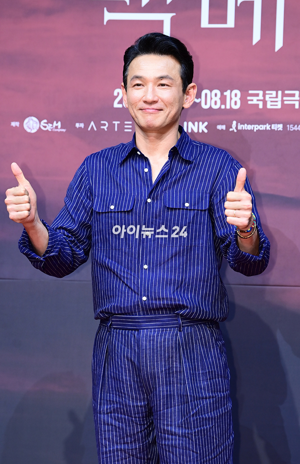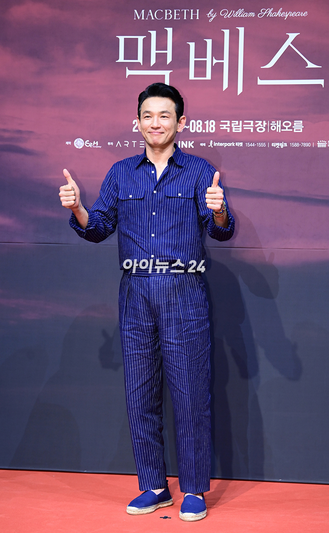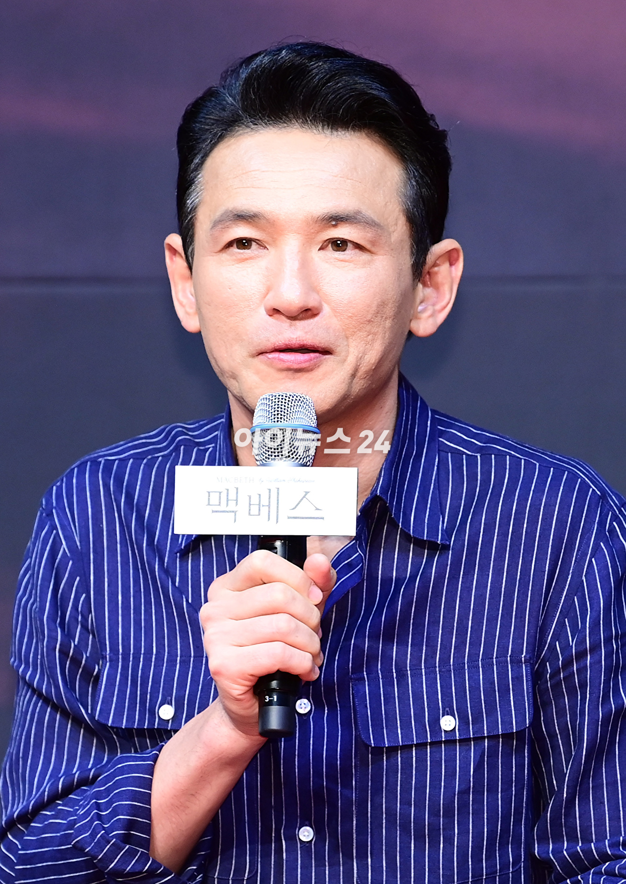 10일 오후 서울 국립극장 하늘극장에서 진행된 연극 '맥베스'(제작 샘컴퍼니) 제작발표회에서 황정민은 "맥베스는 한 마을의 영주였는데 '당신이 왕이 된다'는 말도 안되는 예언에 현혹에 휩싸여서 탐욕과 욕망의 끝으로 가는 인물"이라고 캐릭터를 소개핬다.
