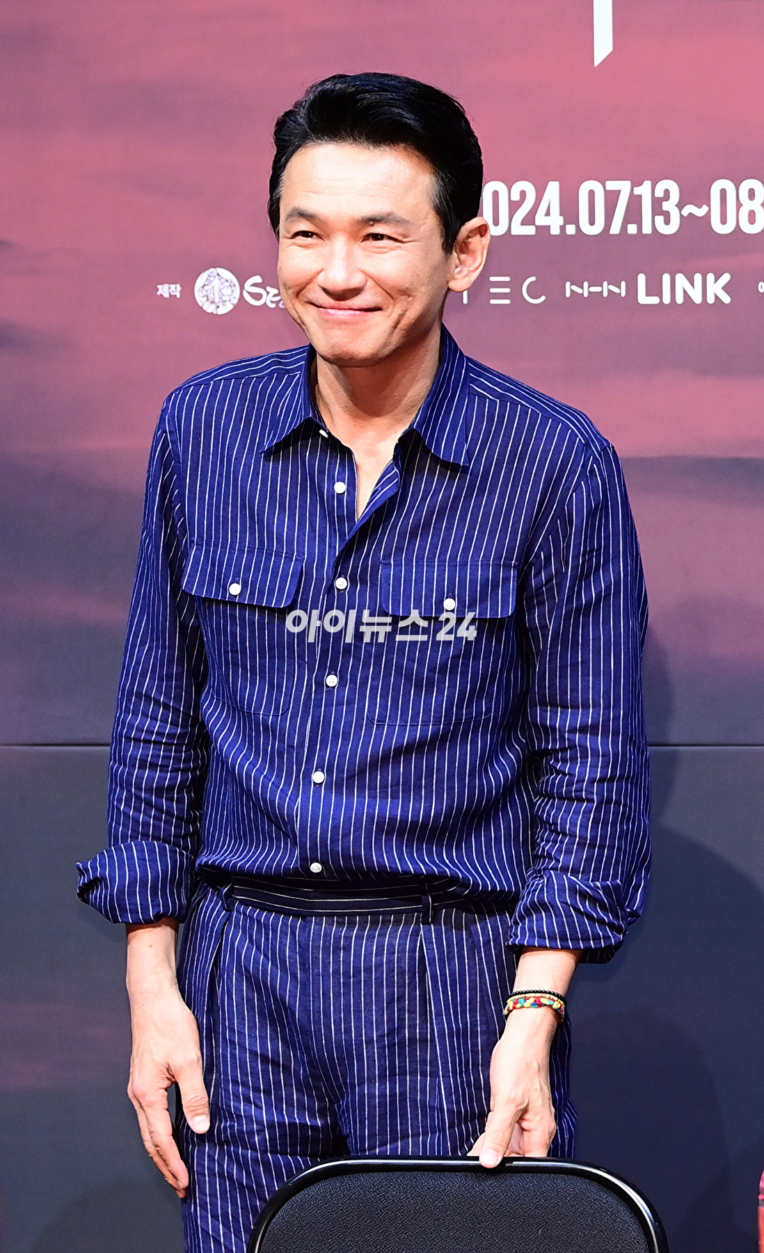 10일 오후 서울 국립극장 하늘극장에서 진행된 연극 '맥베스'(제작 샘컴퍼니) 제작발표회에서 황정민은 "맥베스는 한 마을의 영주였는데 '당신이 왕이 된다'는 말도 안되는 예언에 현혹에 휩싸여서 탐욕과 욕망의 끝으로 가는 인물"이라고 캐릭터를 소개핬다.