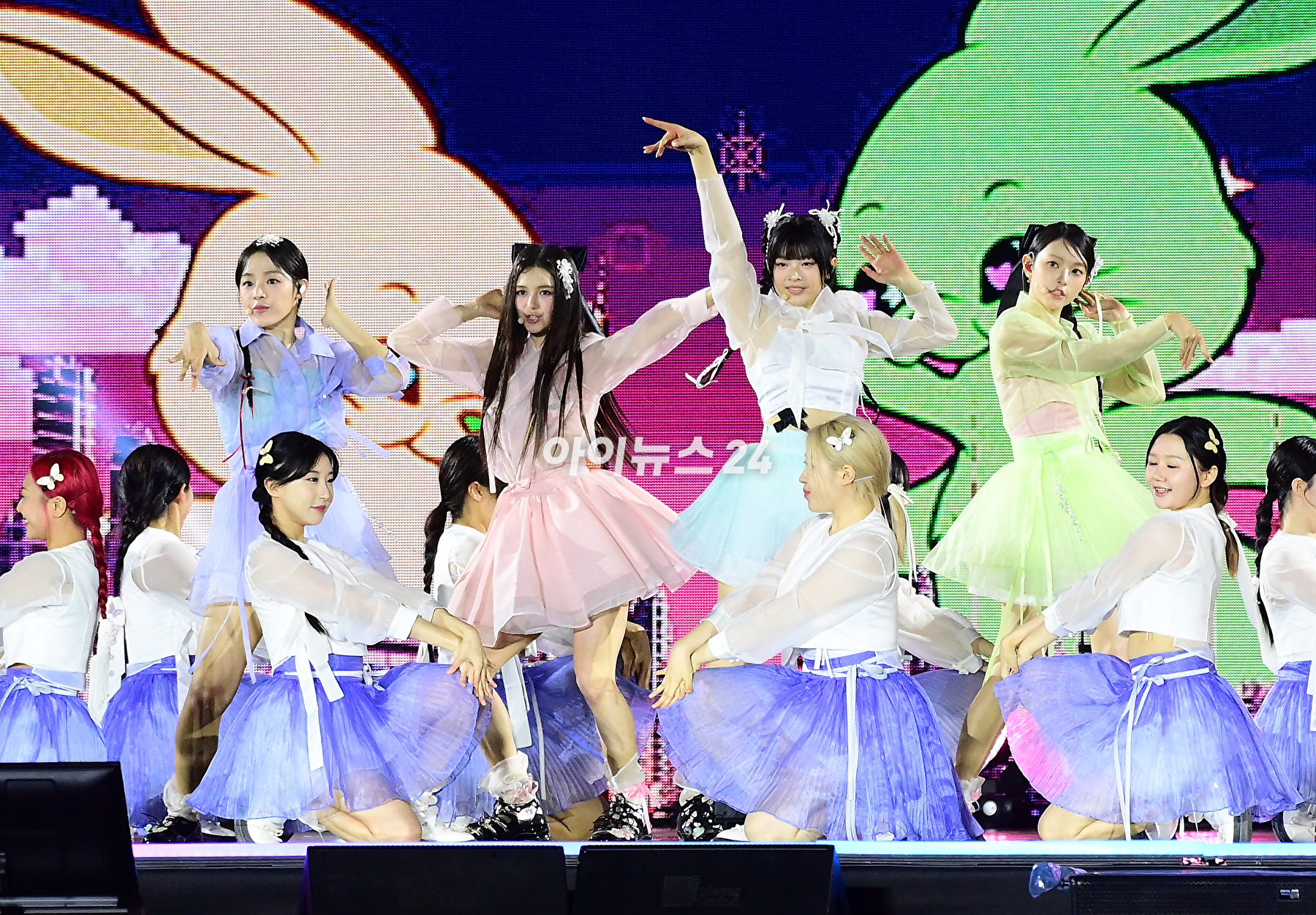 그룹 뉴진스가 21일 오후 서울 종로구 경복궁 흥례문 광장에서 열린 '2024 코리아 온 스테이지-뉴 제너레이션'에서 멋진 무대를 선보이고 있다. [사진=정소희 기자]