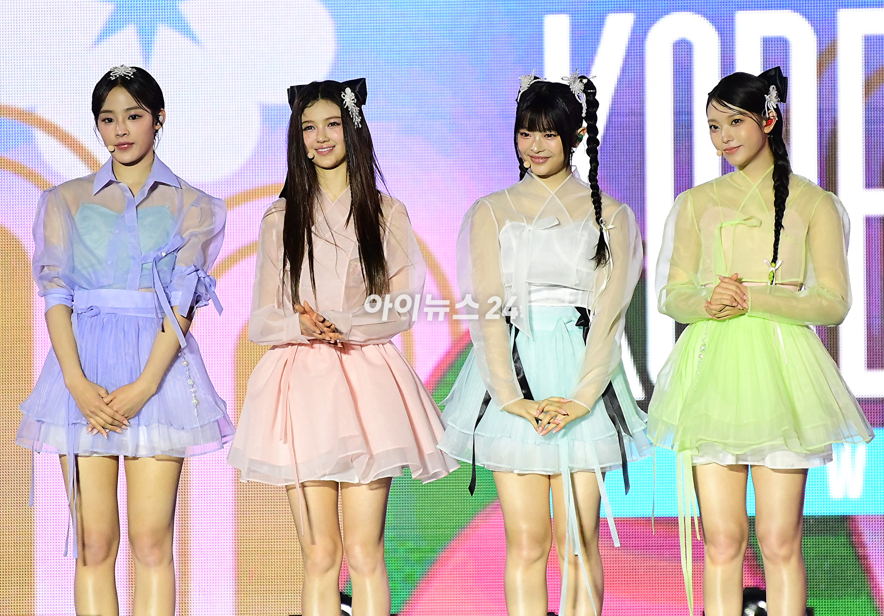 그룹 뉴진스가 21일 오후 서울 종로구 경복궁 흥례문 광장에서 열린 '2024 코리아 온 스테이지-뉴 제너레이션'에서 멋진 무대를 선보이고 있다.