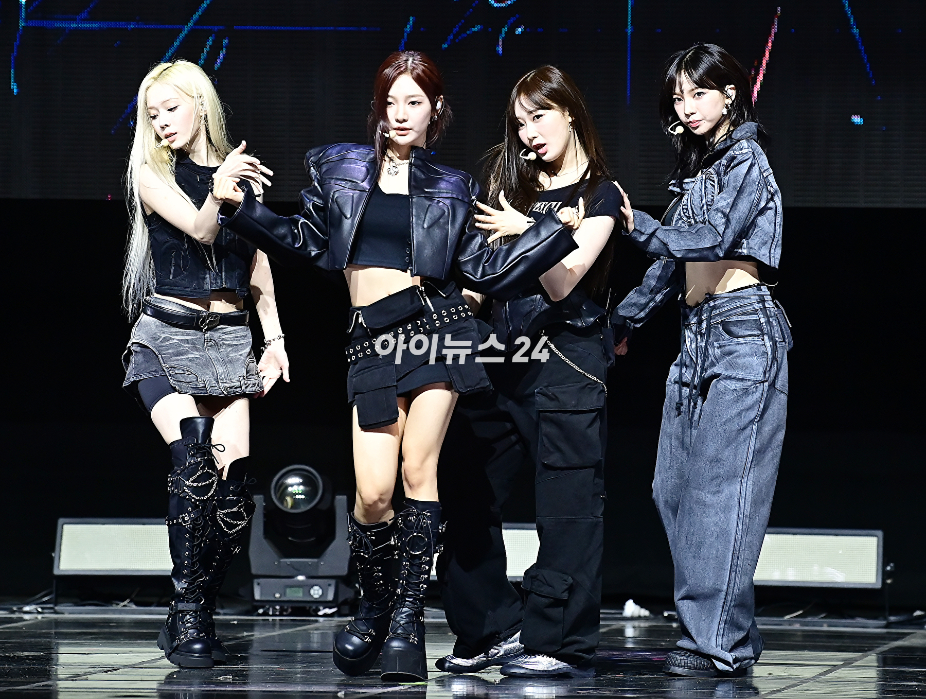 '쇠맛 장인' 에스파가 가장 에스파답게 돌아왔다. 27일 서울 용산구 블루스퀘어 마스터카드홀에서 그룹 에스파 첫 정규 앨범 'Armageddon'(아마겟돈) 발매 기념 쇼케이스가 열렸다. 이날