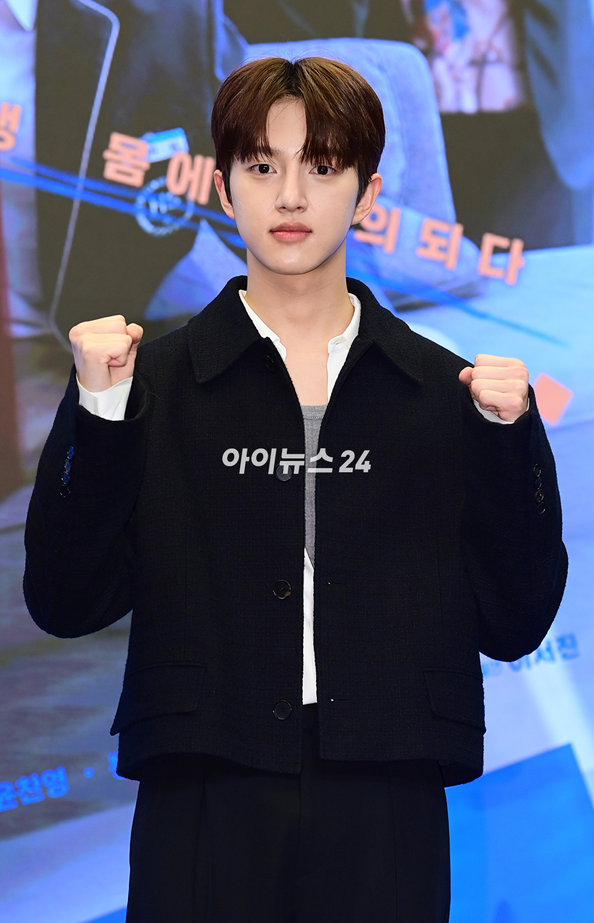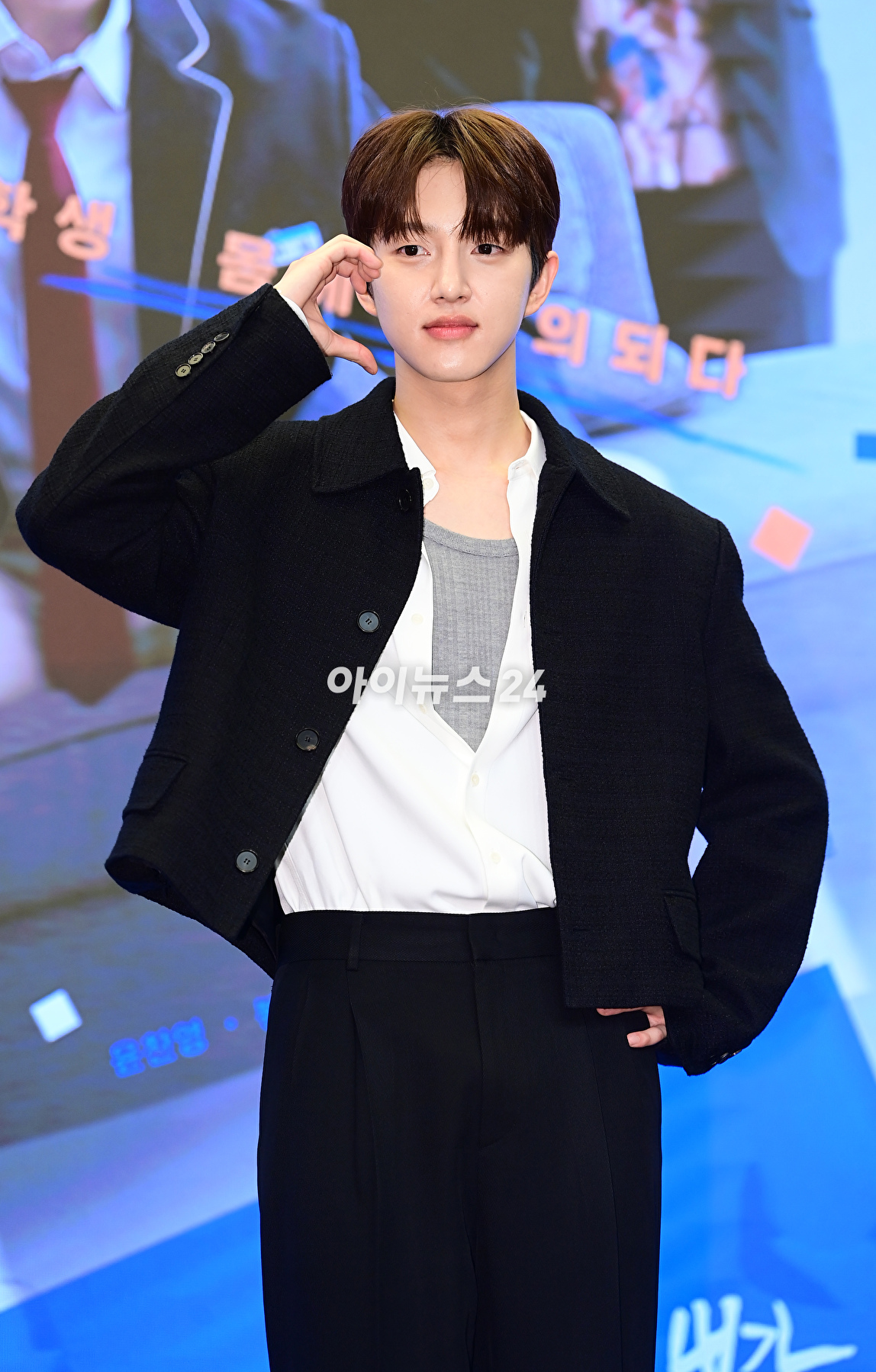 배우 봉재현(골든차일드)이 27일 오후 서울 마포구 상암동 스탠포드호텔에서 열린 웨이브(Wavve), 티빙, 왓챠 드라마 '조폭인 내가 고등학생이 되었습니다'(이하 '조폭고') 제작발표회에 참석하고