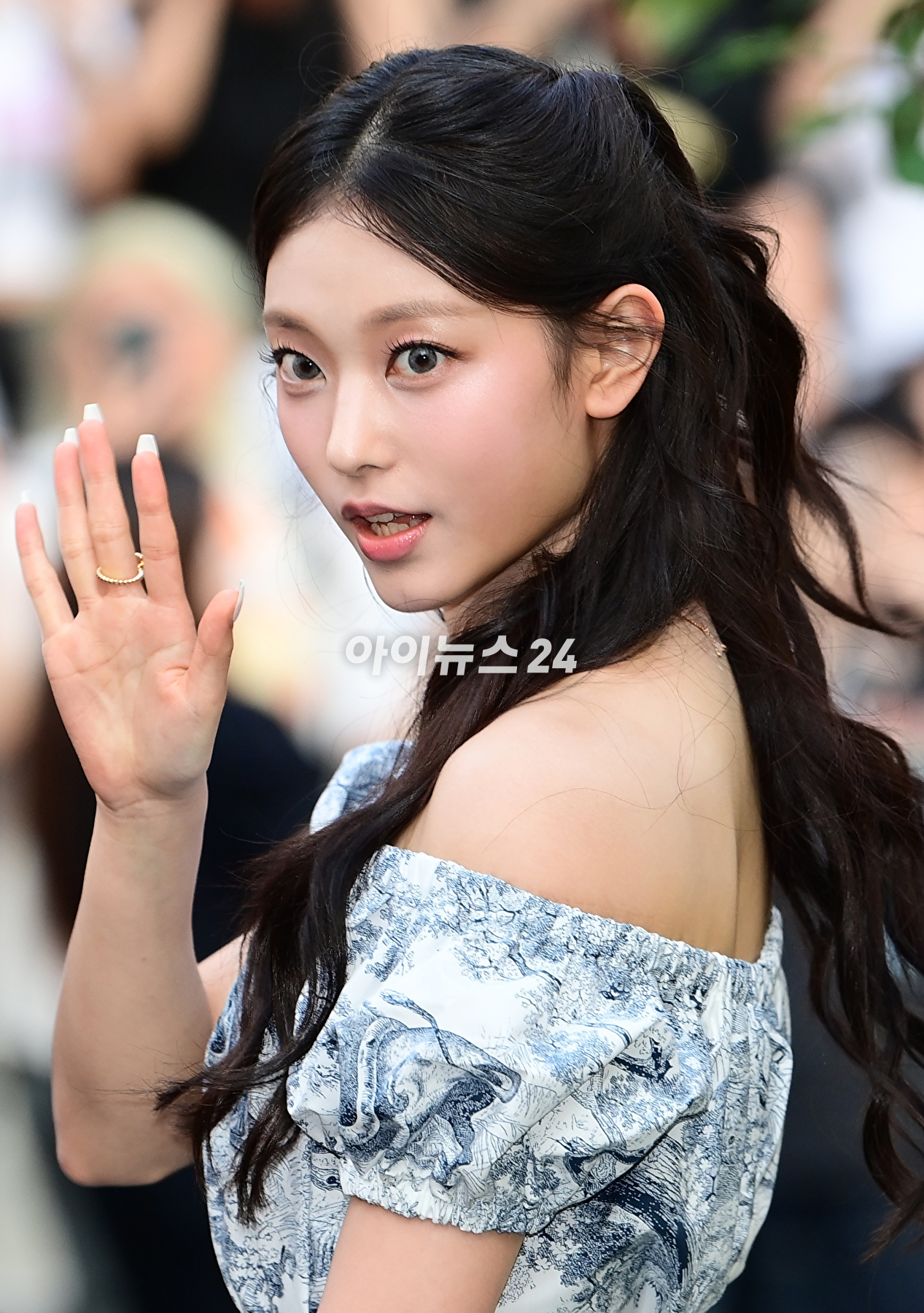 그룹 뉴진스 해린이 29일 오후 서울 성동구 성수동 인근에서 진행된 디올(DIOR) 디올리비에라 컬렉션 포토콜에 행사에 참석하고 있다.