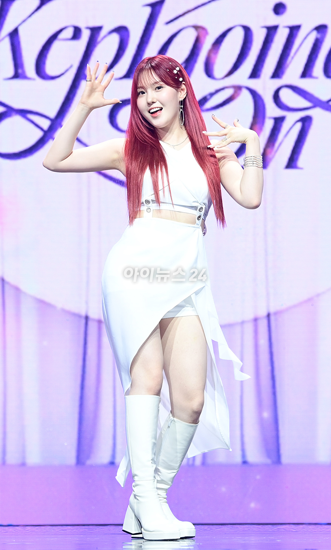 그룹 케플러가 7인 재계약 소식을 알리며 마지막 9인 활동의 신호탄을 쏘아올렸다. 3일 서울 광진구 예스24라이브홀에서 케플러 첫 정규앨범 'Kep1going On'(켑원고잉온) 발매 기념 쇼케이스가 열렸