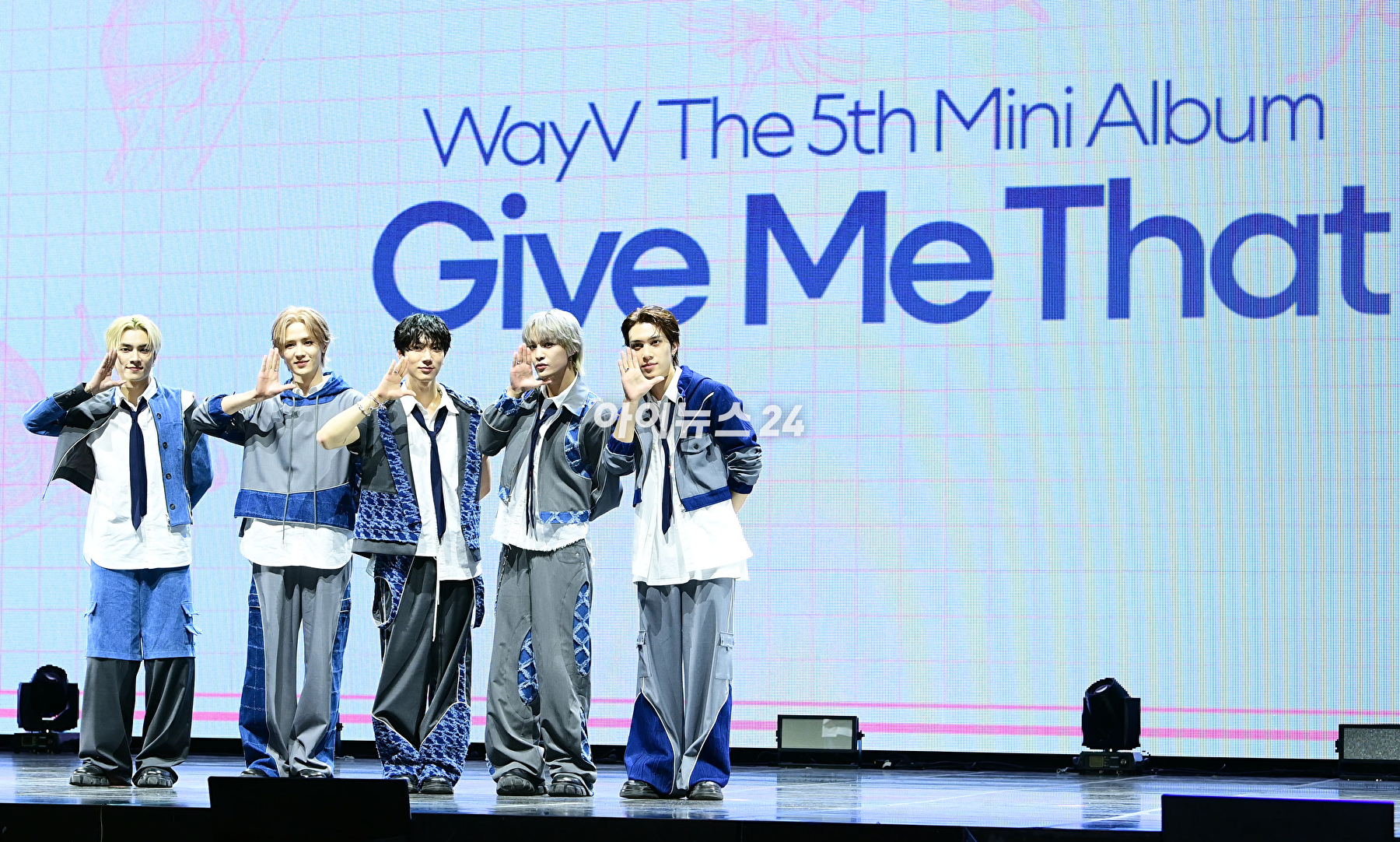 웨이션브이(WayV, 샤오쥔 쿤 텐 양양 헨드리)는 3일 오후 미니 5집 발매 쇼케이스가 서울 한남동 블루스퀘어 마스터카드홀에서 미니 5집 '기브 미 댓(Give Me That)' 발매 쇼케이스를 열고 컴백을 알렸다.