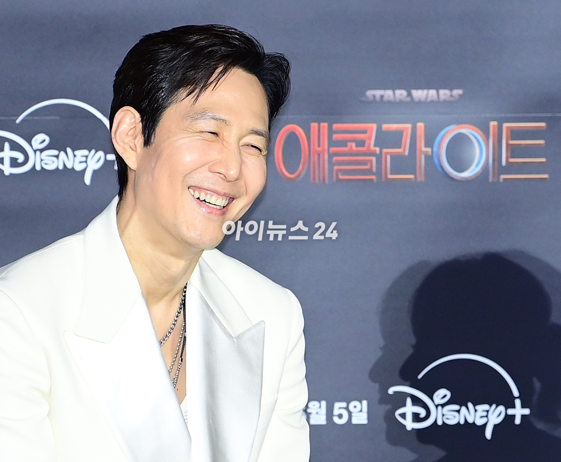 이정재는 5일 오후 서울 용산 아이파크몰 CGV에서 열린 디즈니플러스 '스타워즈' 시리즈 '애콜라이트' 간담회에 참석해 작품 이야기를 들려줬다.