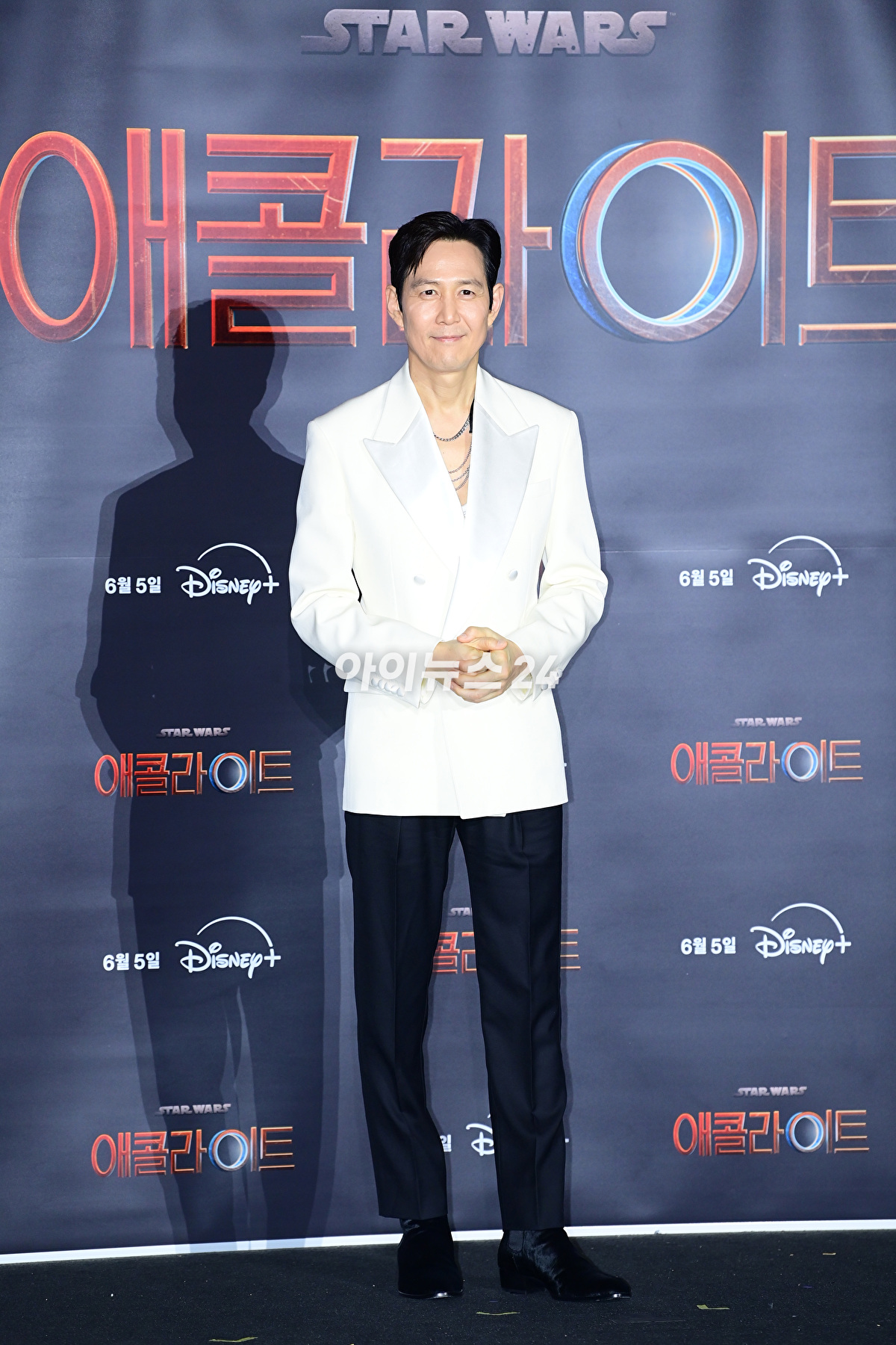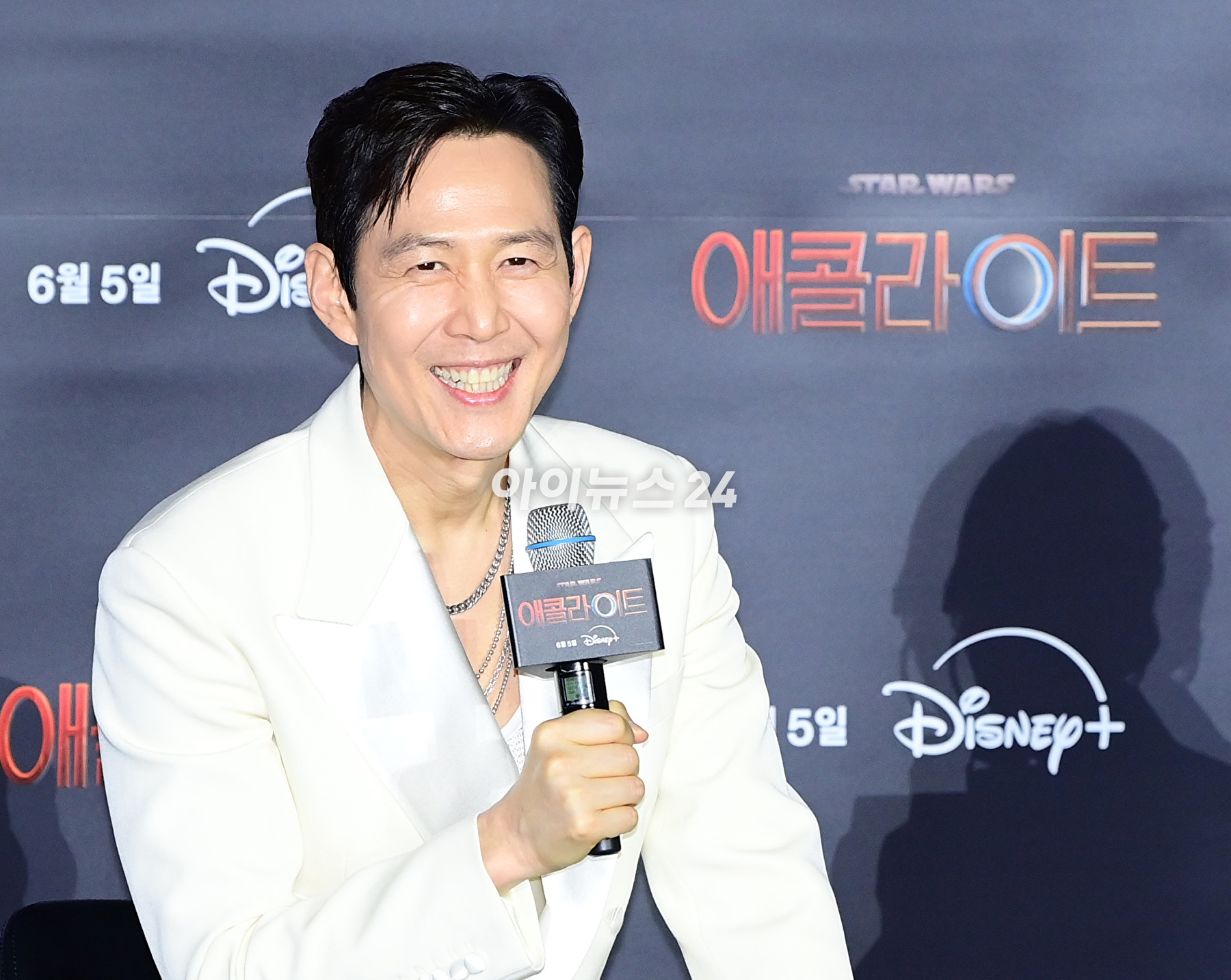 이정재는 5일 오후 서울 용산 아이파크몰 CGV에서 열린 디즈니플러스 '스타워즈' 시리즈 '애콜라이트' 간담회에 참석해 작품 이야기를 들려줬다.
