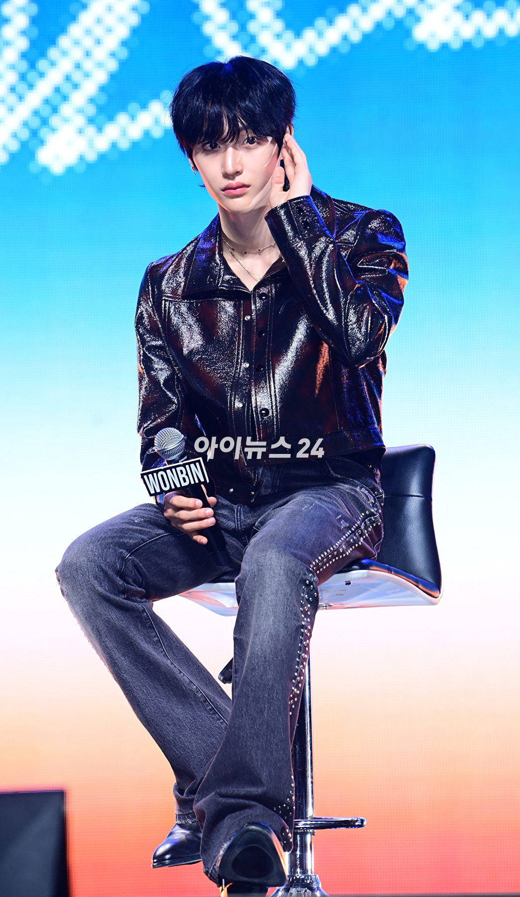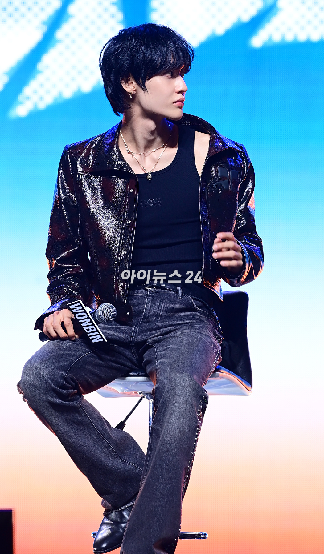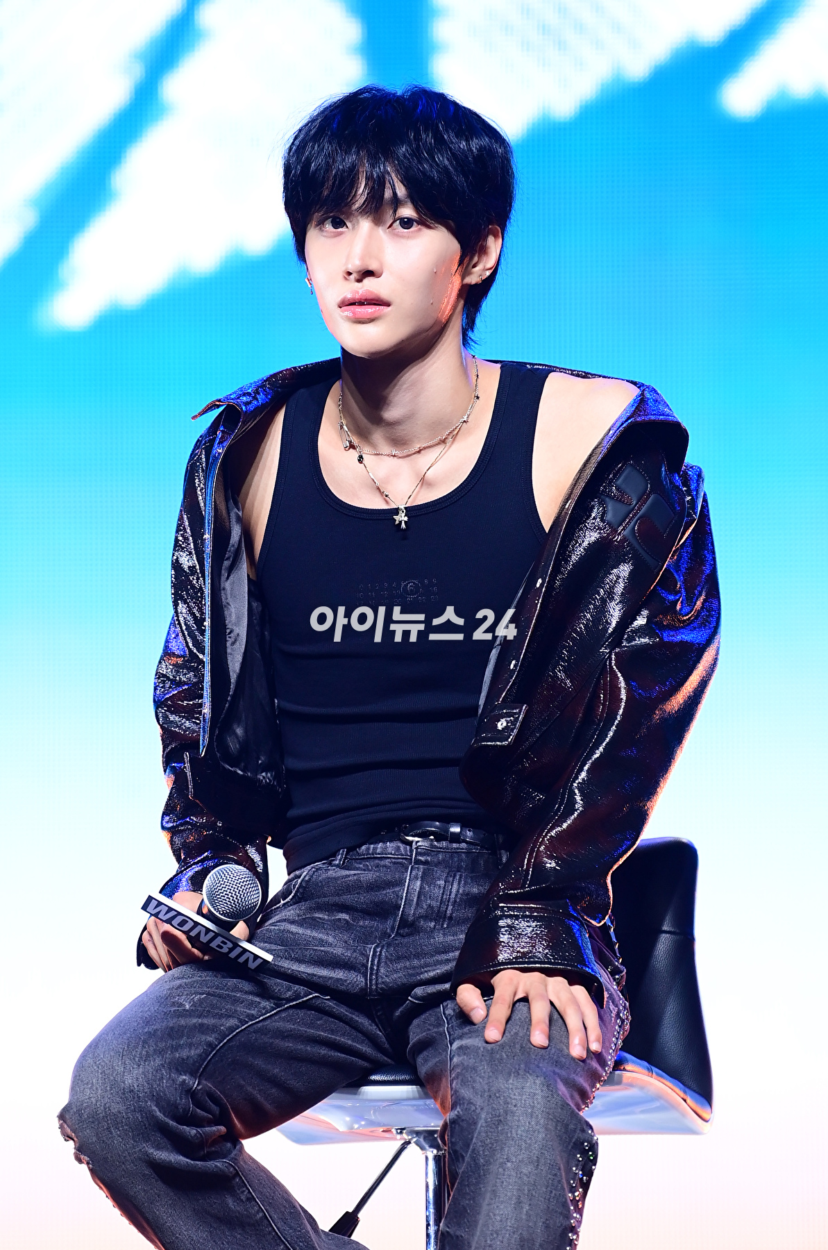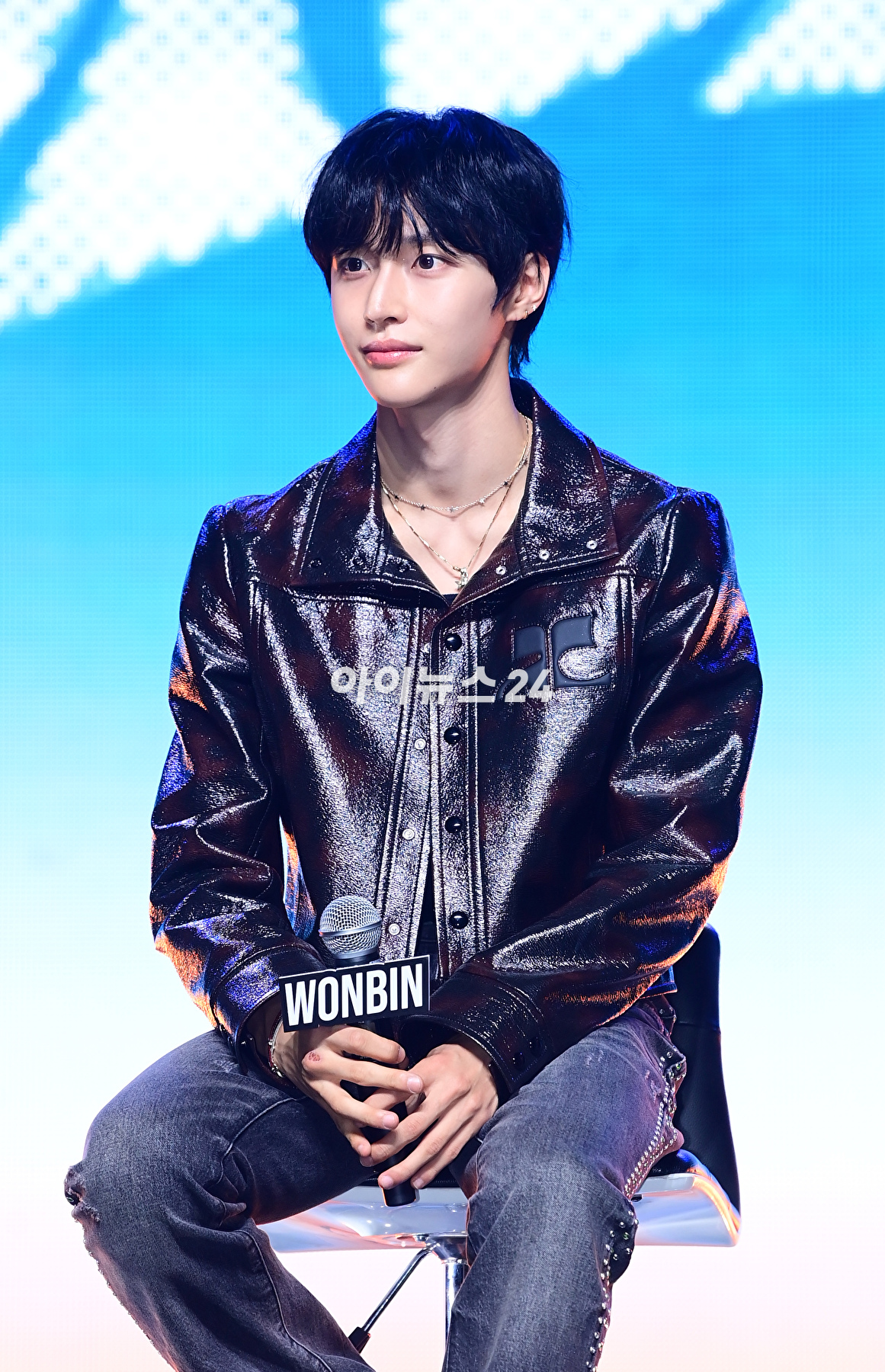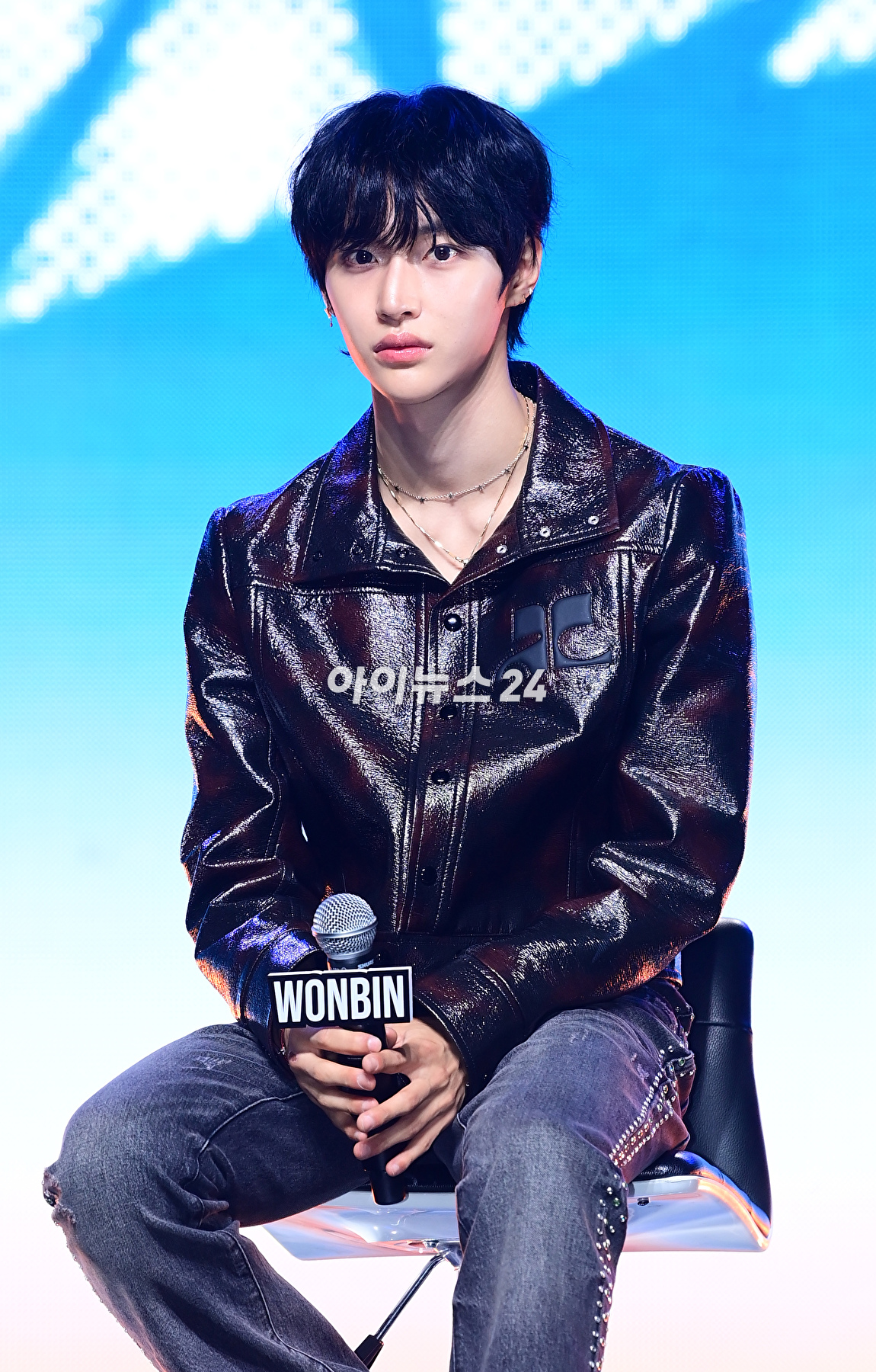 그룹 라이즈(RIIZE) 원빈이 17일 오후 서울 한남동 블루스퀘어 마스터카드홀에서 진행된 첫 미니앨범 '라이징(RIIZING)' 프레스 프리미어 행사에 참석하고 있다. 데뷔 후 장발을 유지했던 원빈은 이번 앨범 활동부터 짧은 머리로 변신해 눈길을 끌었다.