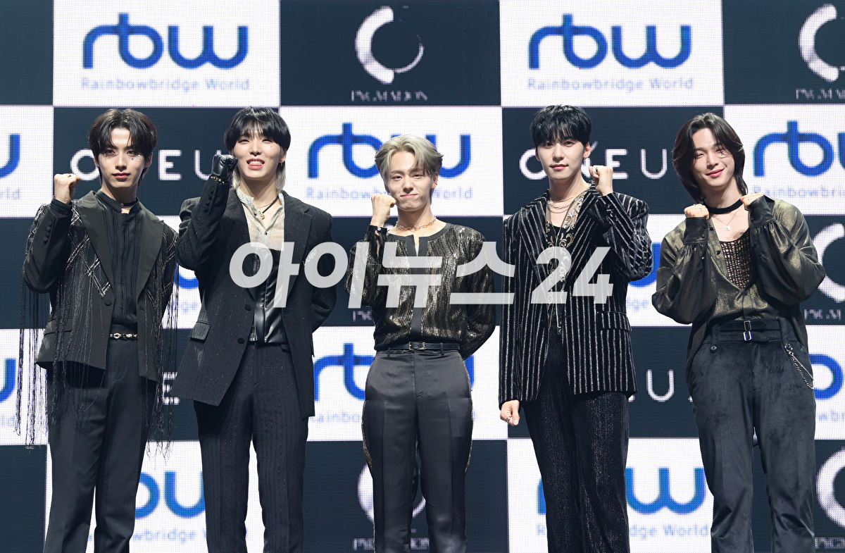 그룹 원어스가 8일 오후 서울 광진구 광장동 예스24 라이브홀에서 열린 원어스(ONEUS) 미니 9집 PYGMALION(피그말리온) 쇼케이스에 참석하고 있다.