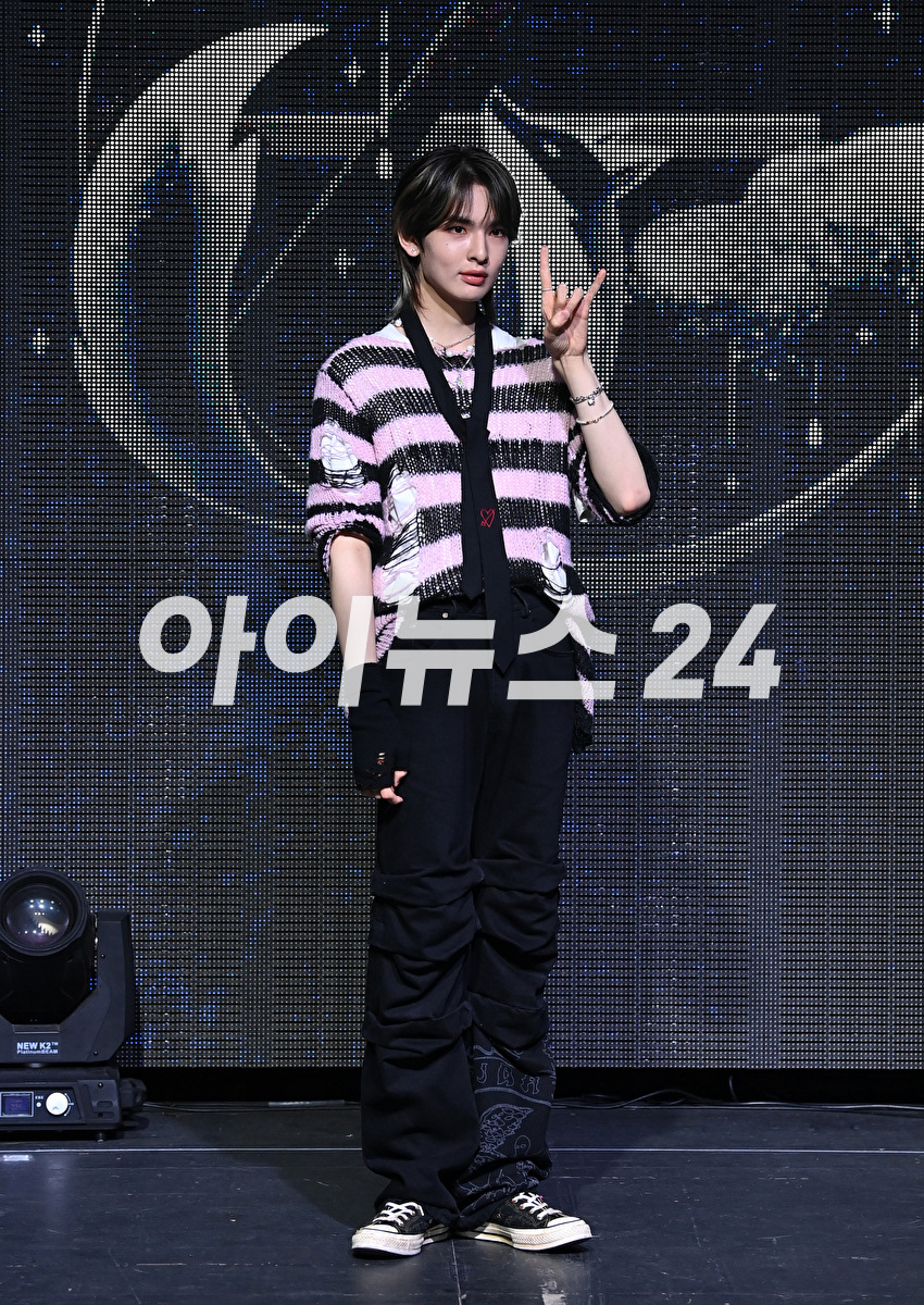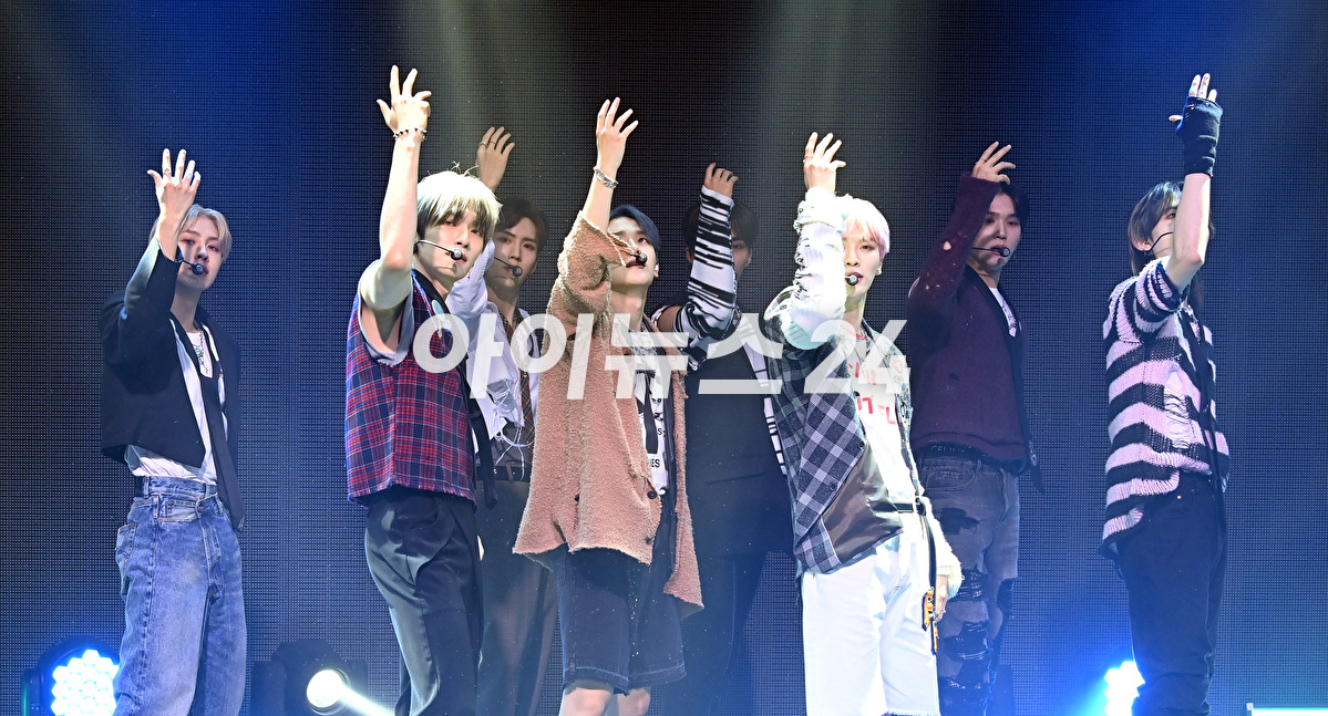그룹 이펙스가 26일 오후 서울 마포구 합정동 신한플레이스퀘어에서 열린 다섯 번째 EP '사랑의 서 챕터 2. '성장통(Growing Pains)' 발매 기념 쇼케이스에서 무대를 선보이고 있다. '사랑의 서 챕터 2.