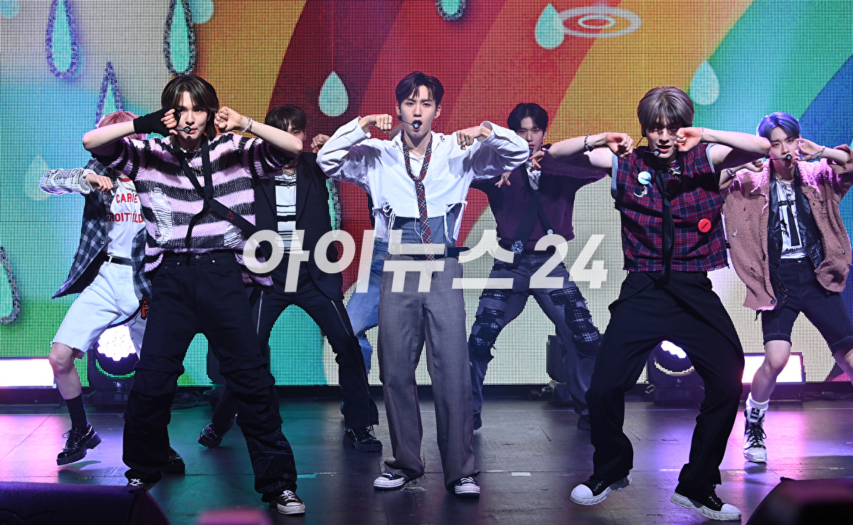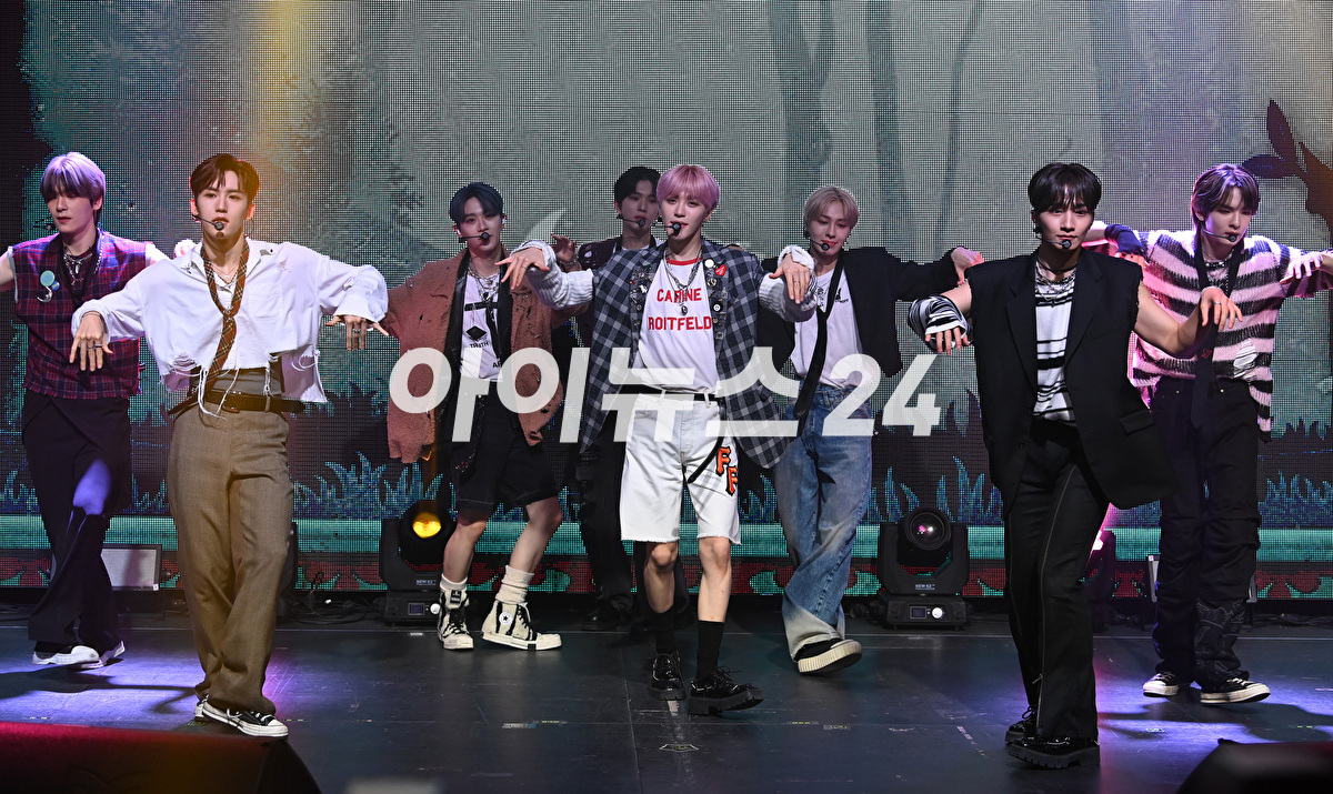 그룹 이펙스가 26일 오후 서울 마포구 합정동 신한플레이스퀘어에서 열린 다섯 번째 EP '사랑의 서 챕터 2. '성장통(Growing Pains)' 발매 기념 쇼케이스에서 무대를 선보이고 있다.