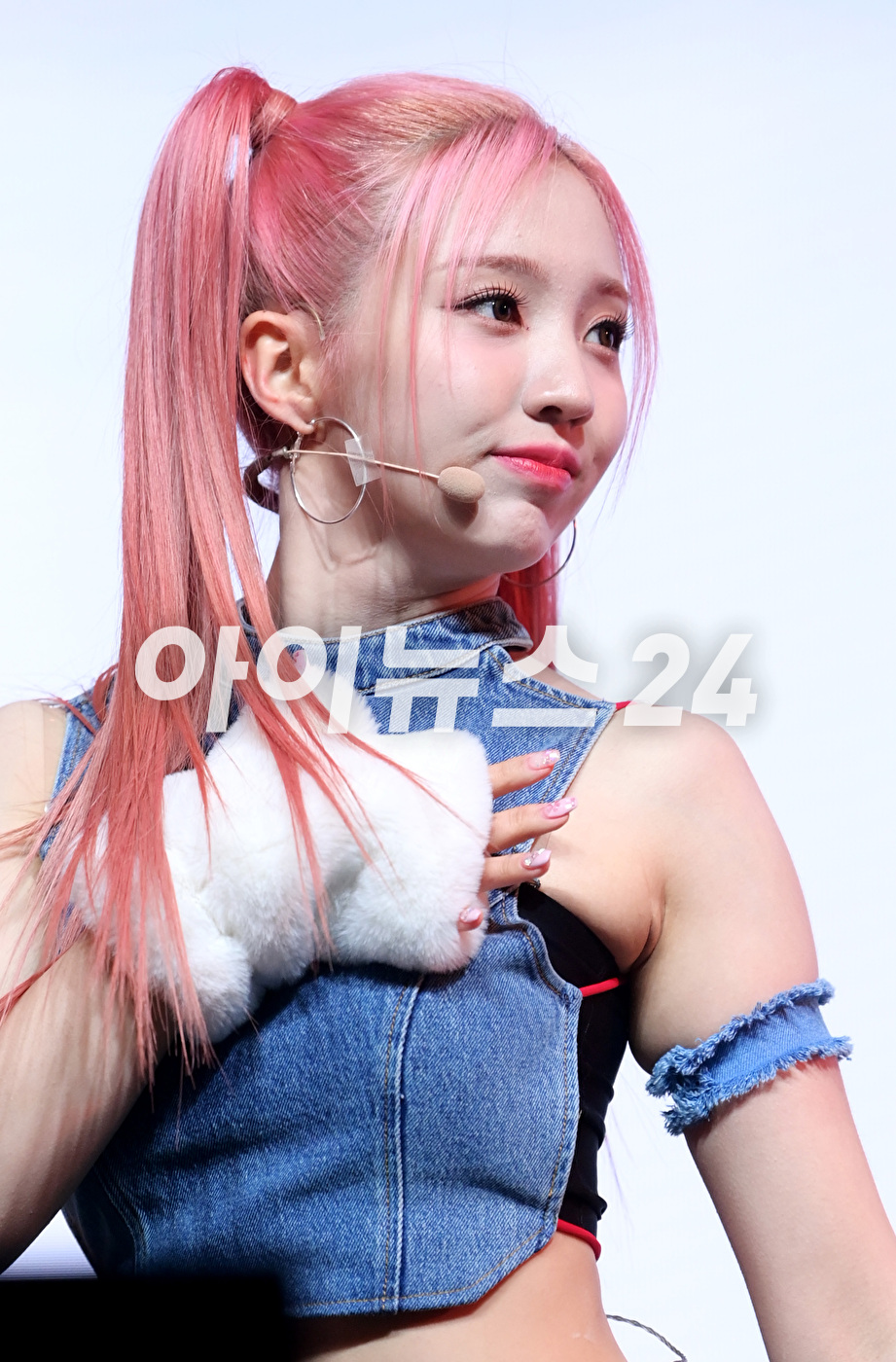 그룹 케플러(Kep1er) 강예서가 10일 오후 서울 광진구 예스24라이브홀에서 진행된 네 번째 미니앨범 'LOVESTRUCK! (러브스트럭)' 발매 기념 쇼케이스에서 수록곡 무대를 선보이고 있다.