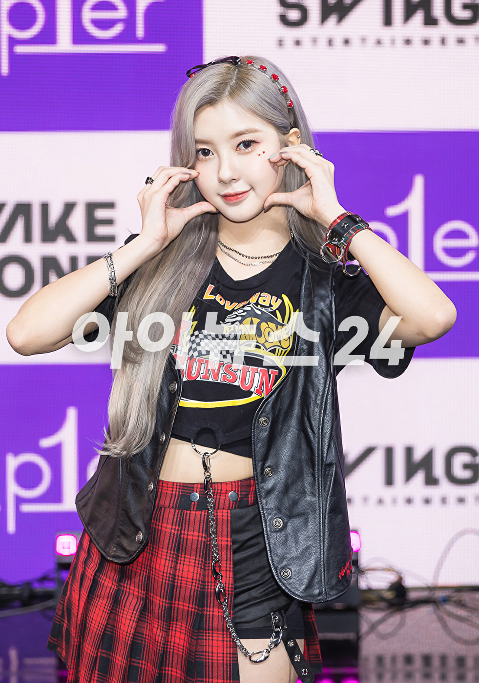 그룹 케플러(Kep1er) 김다연이 10일 오후 서울 광진구 예스24라이브홀에서 진행된 네 번째 미니앨범 'LOVESTRUCK! (러브스트럭)' 발매 기념 쇼케이스에서 타이틀곡 'Giddy (기디)' 무대를 선보이고 있다.