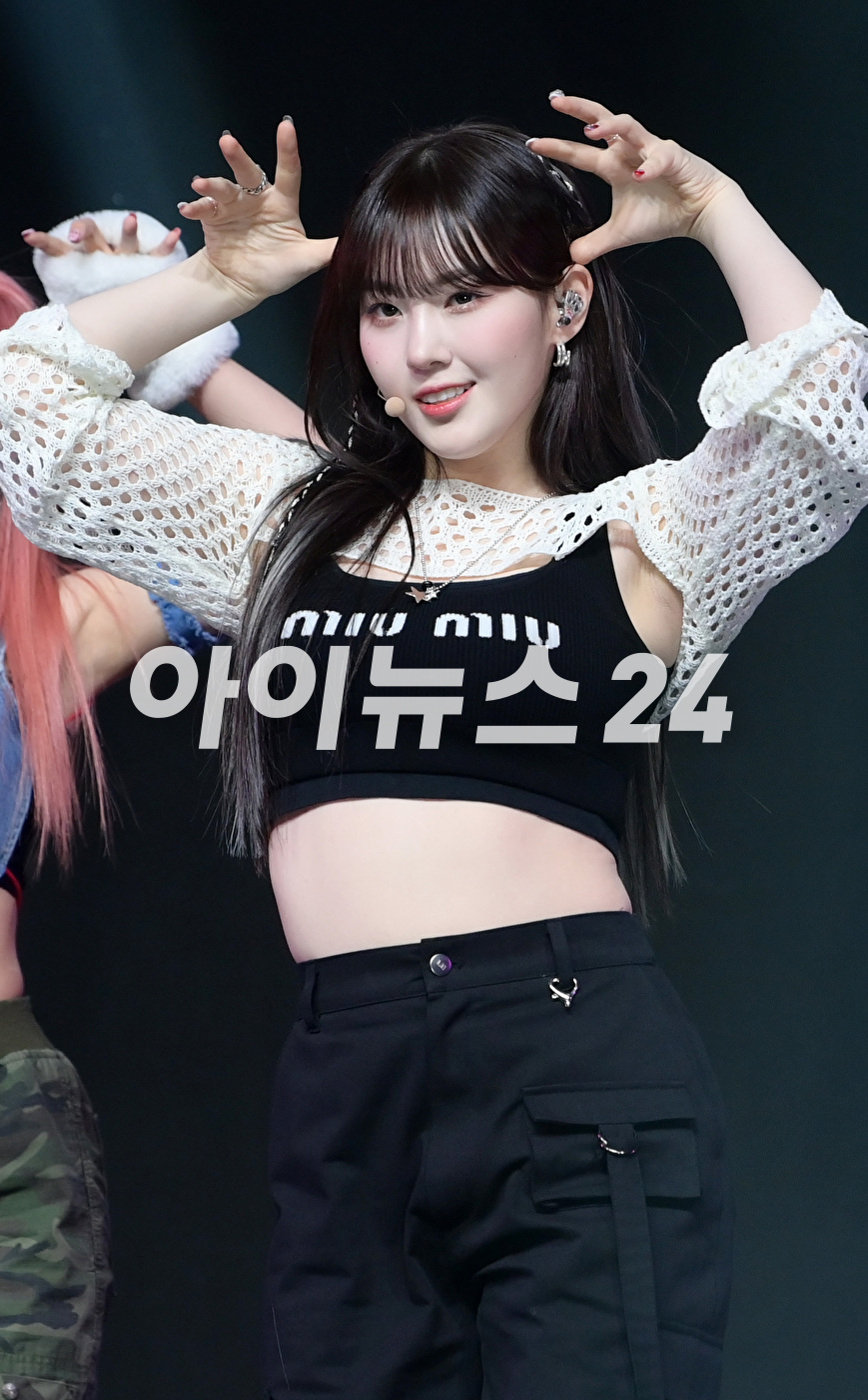 그룹 케플러(Kep1er) 김채현이 10일 오후 서울 광진구 예스24라이브홀에서 진행된 네 번째 미니앨범 'LOVESTRUCK! (러브스트럭)' 발매 기념 쇼케이스에서 수록곡 무대를 선보이고 있다. 타이틀곡 'Giddy (