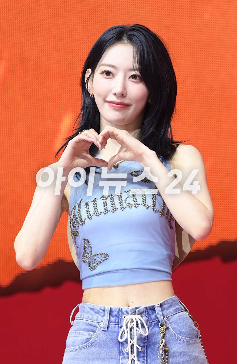 그룹 르세라핌 사쿠라가 1일 오후 서울 광장동 예스24라이브홀에서 열린 르세라핌(LE SSERAFIM) 첫 번째 정규 앨범 '언포기븐'(UNFORGIVEN) 미디어 쇼케이스에 참석해 포즈를 취하고 있다. 르세라핌(김