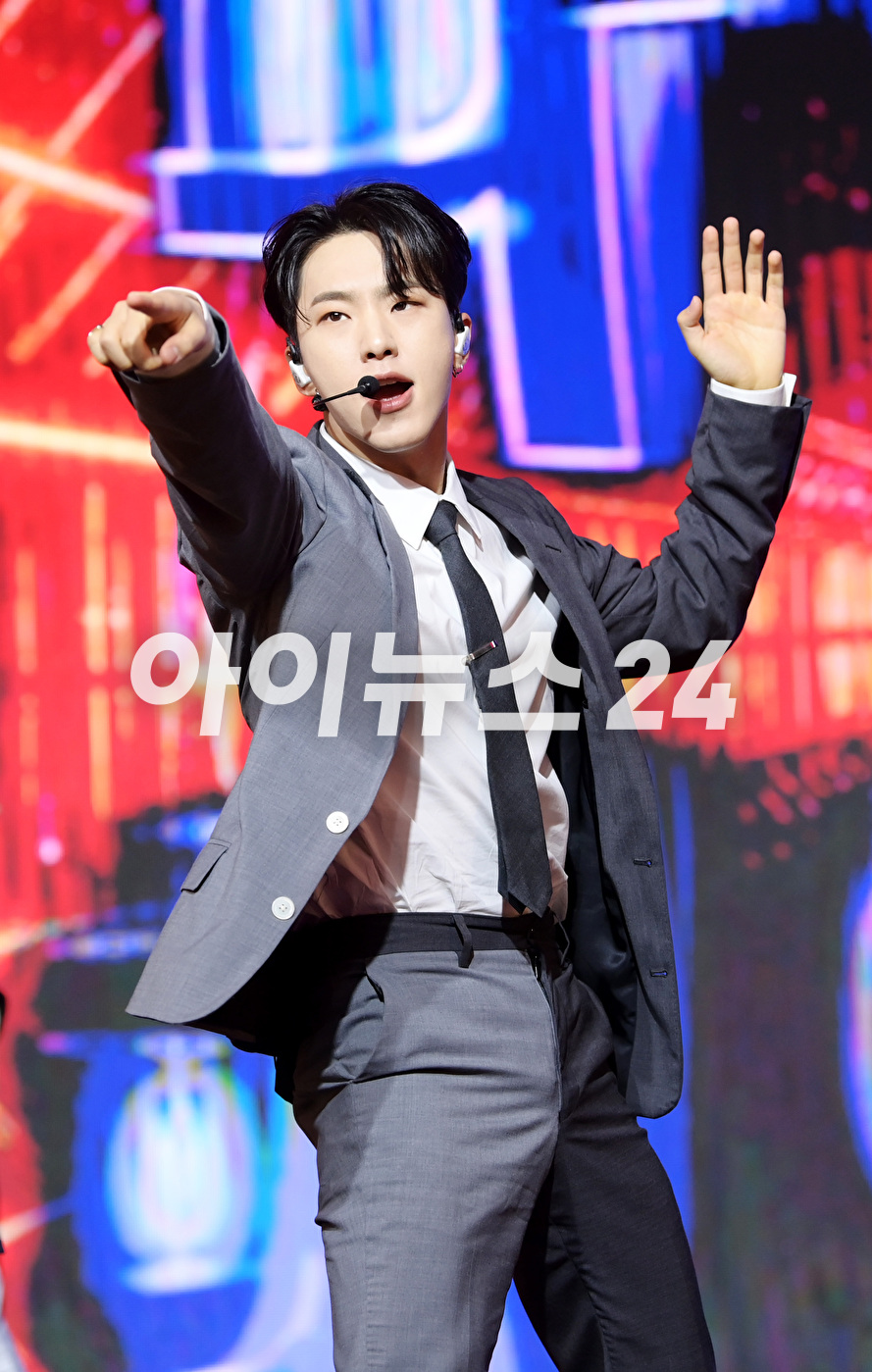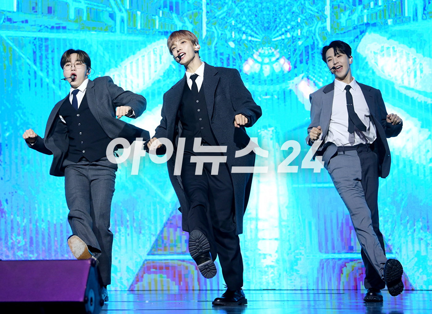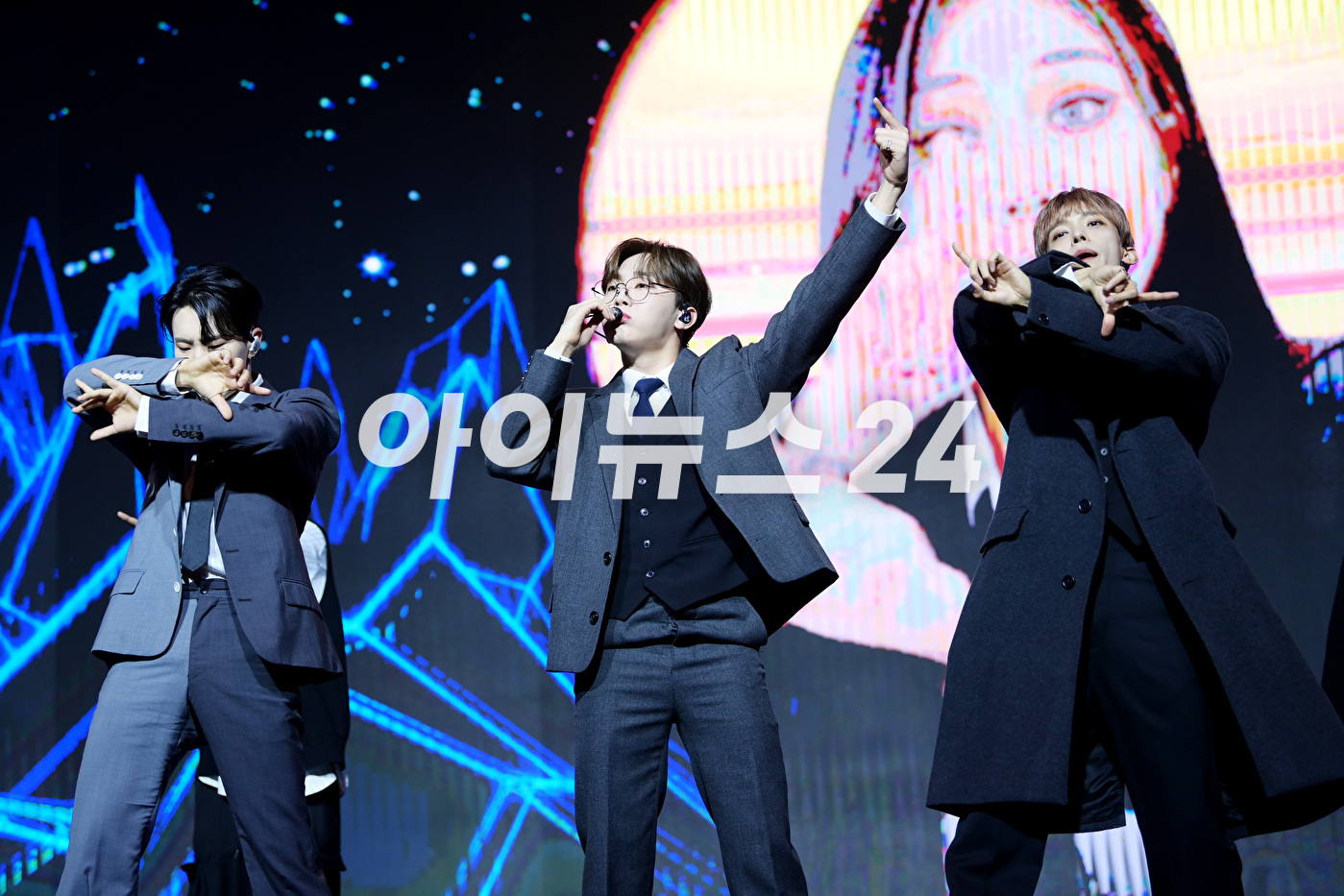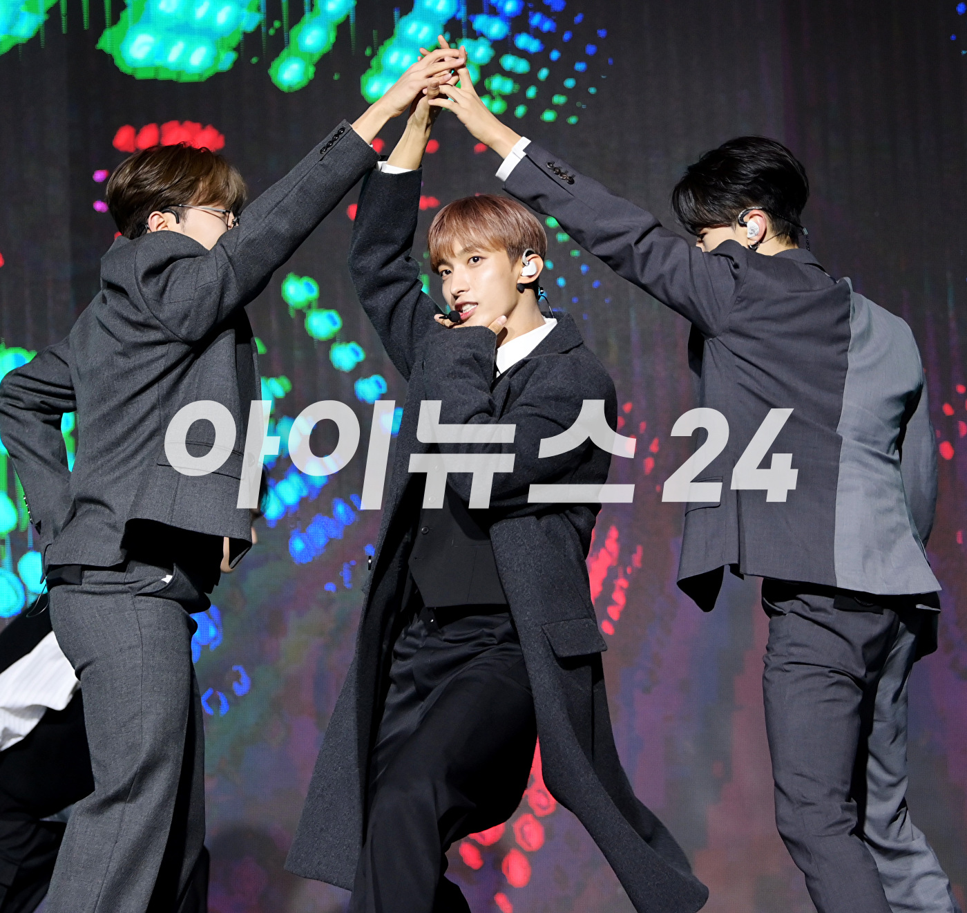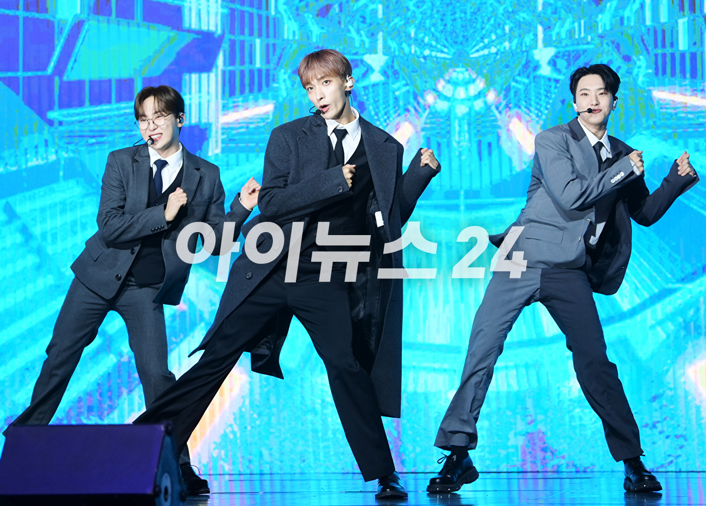 세븐틴의 유닛 그룹 부석순(승관, 호시, 도겸)이 10일 오후 서울 용산구 그랜드하얏트 서울 그랜드볼룸에서 열린 도드람 2022~2023 V-리그 시상식에 참석해 축하공연을 선보이고 있다.