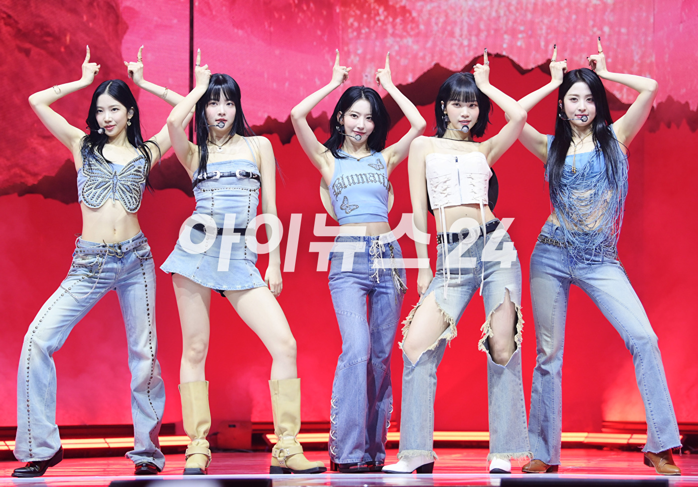 그룹 르세라핌이 1일 오후 서울 광장동 예스24라이브홀에서 열린 르세라핌(LE SSERAFIM) 첫 번째 정규 앨범 '언포기븐'(UNFORGIVEN) 미디어 쇼케이스에 참석해 수록곡 '노-리턴' 무대를 선보이고 있다.