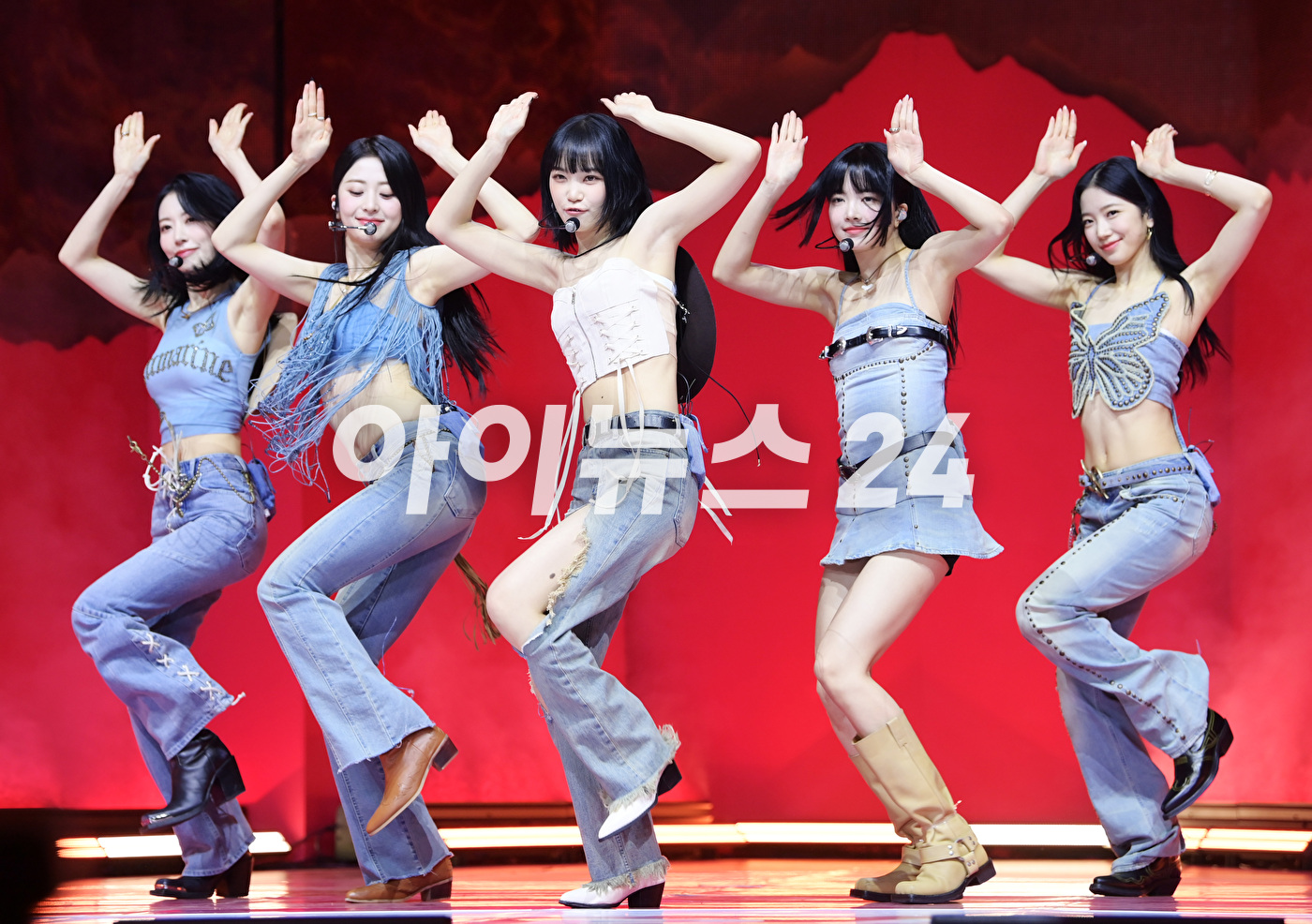 그룹 르세라핌이 1일 오후 서울 광장동 예스24라이브홀에서 열린 르세라핌(LE SSERAFIM) 첫 번째 정규 앨범 '언포기븐'(UNFORGIVEN) 미디어 쇼케이스에 참석해 수록곡 '노-리턴' 무대를 선보이고 있다.