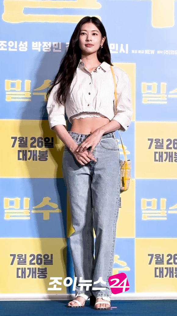 배우 정소민이 지난 20일 오후 서울 강남구 삼성동 메가박스 코엑스점에서 열린 영화 '밀수'(감독 류승완) VIP 시사회에 참석해 포즈를 취하고 있다.