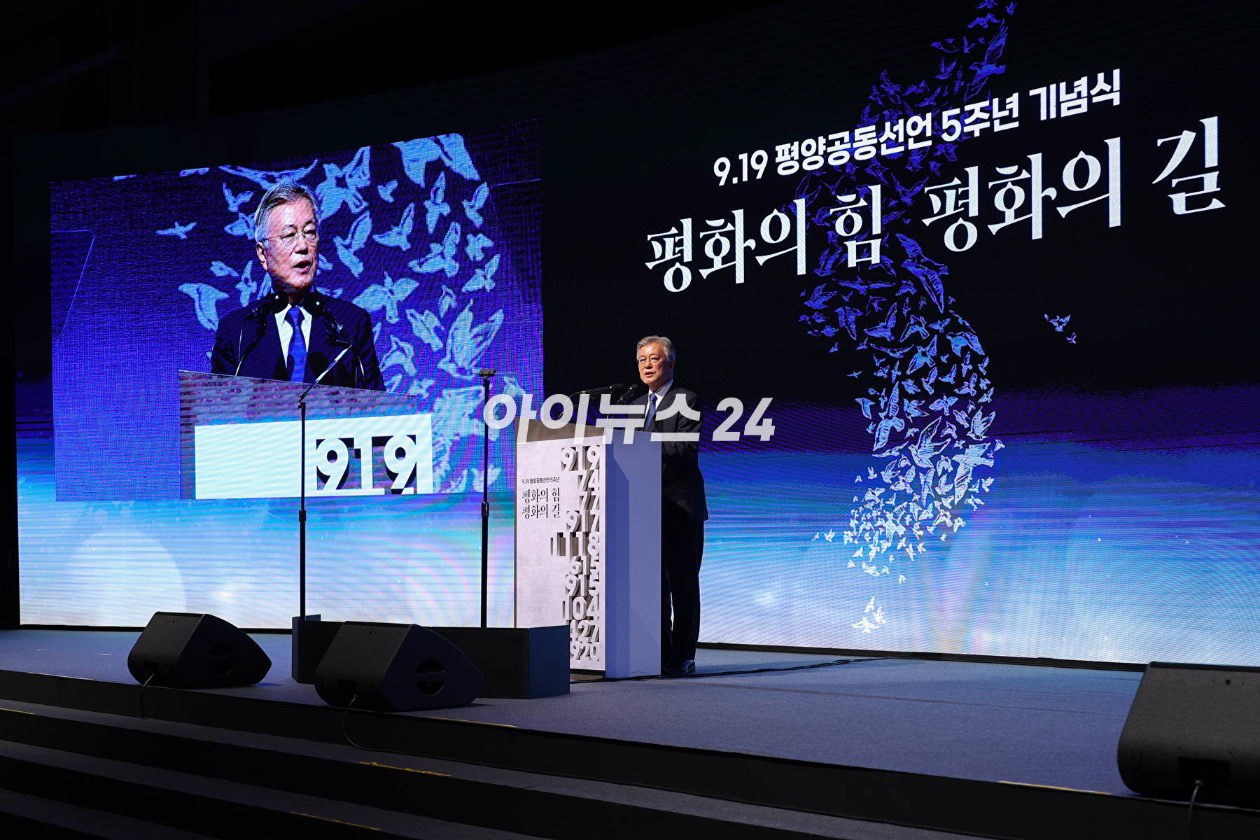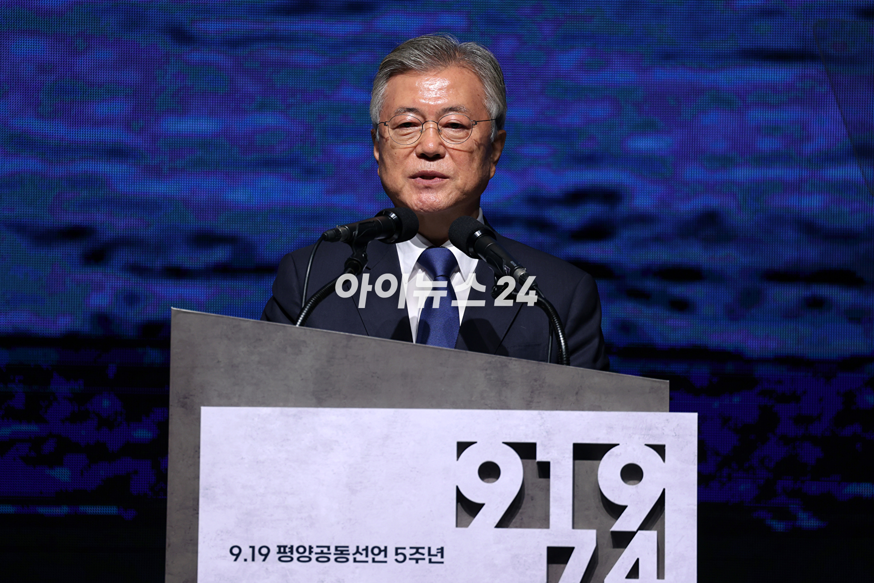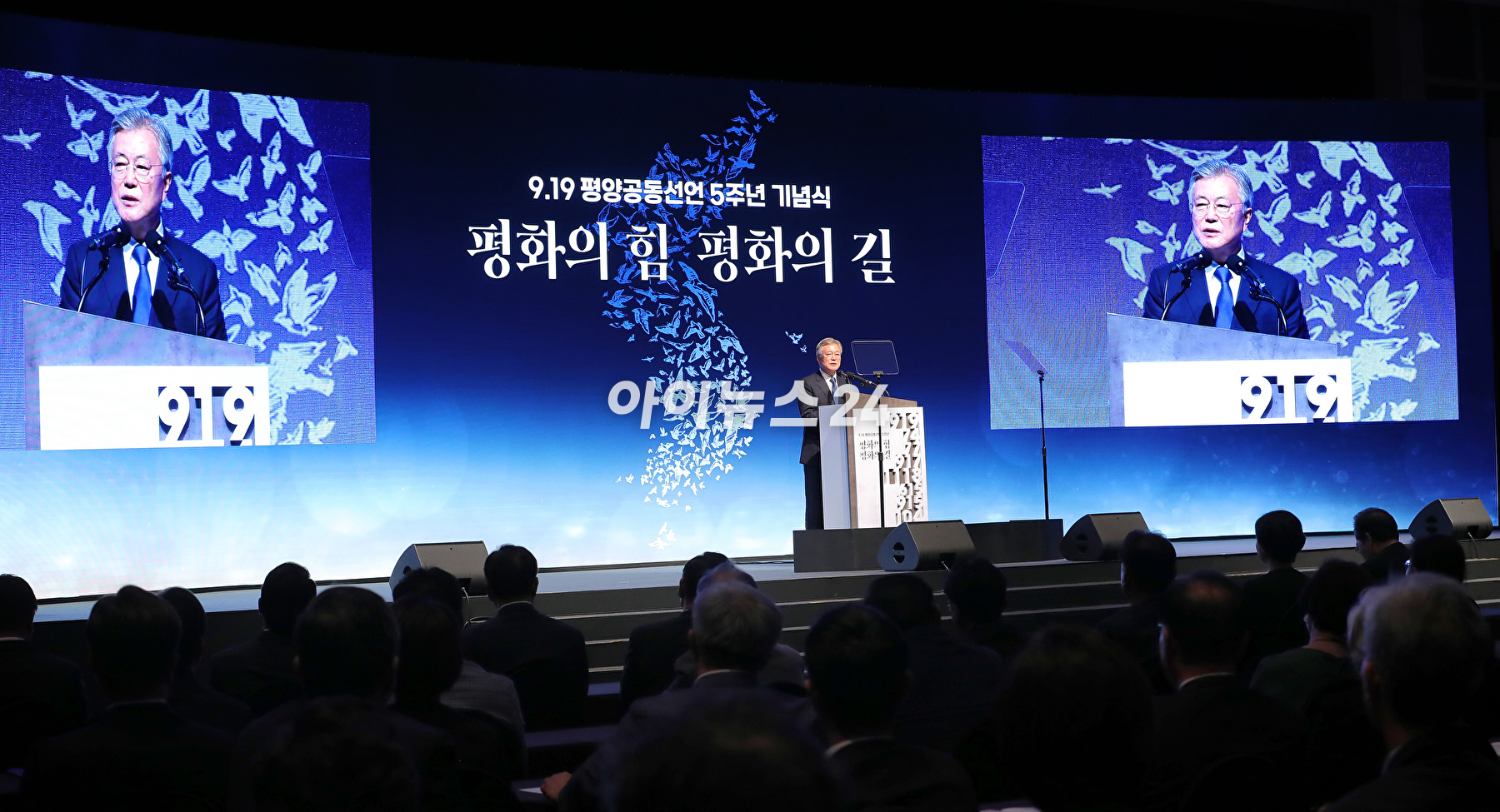 [아이뉴스24 곽영래 기자]19일 오후 서울 여의도 63빌딩에서 열린 '9.19 평양공동선언 5주년 기념, 평화의 힘 평화의 길' 기념식에서 인사말을 하고 있다.