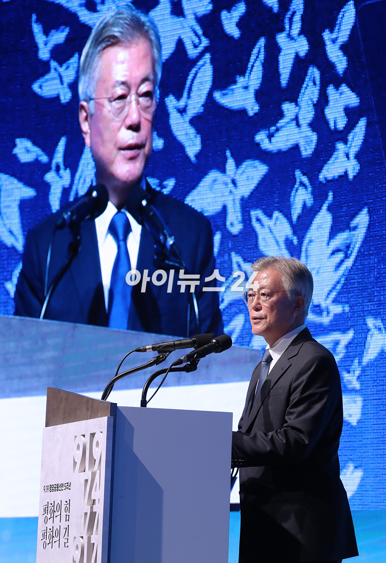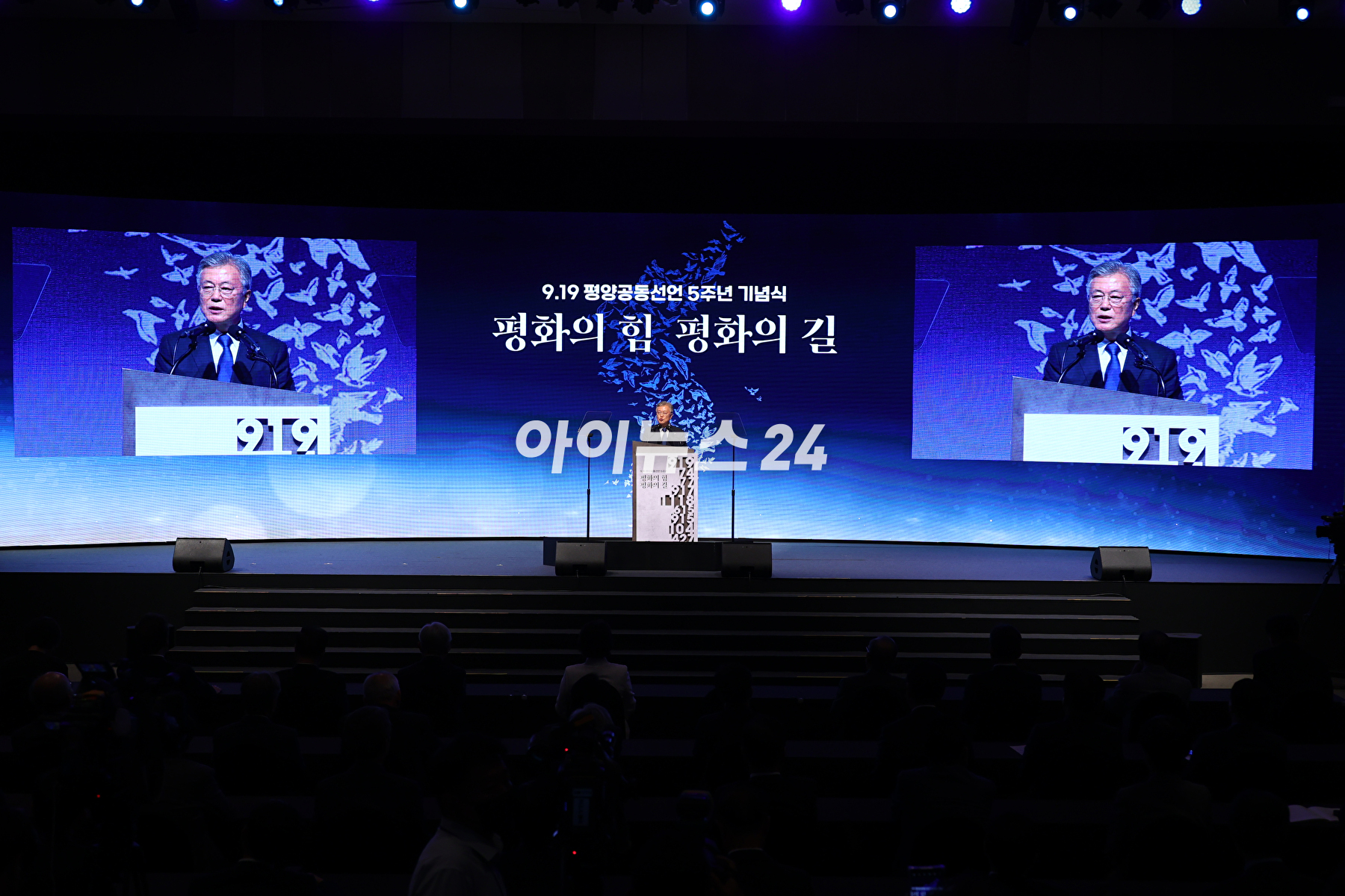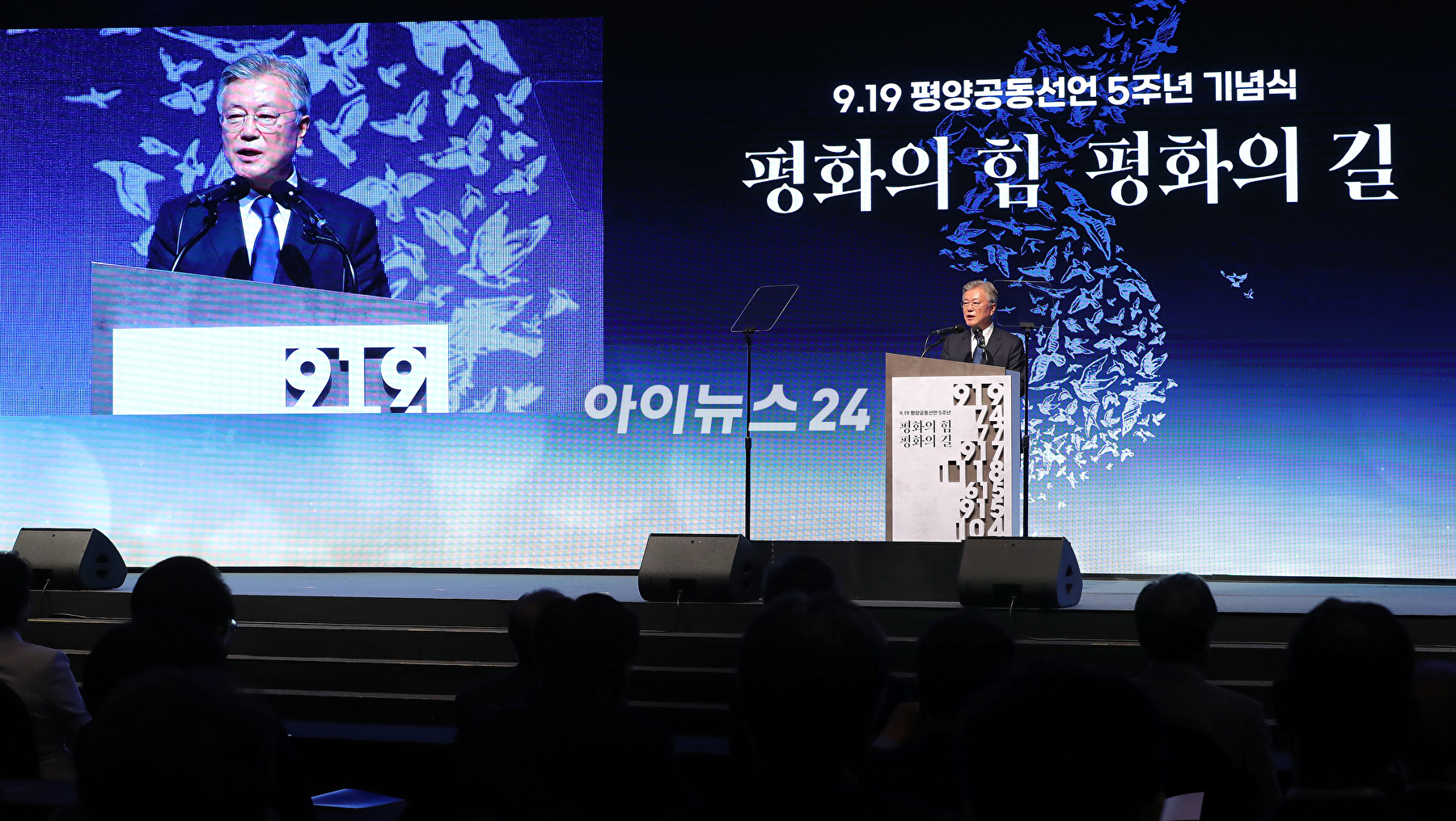 [아이뉴스24 곽영래 기자]19일 오후 서울 여의도 63빌딩에서 열린 '9.19 평양공동선언 5주년 기념, 평화의 힘 평화의 길' 기념식에서 인사말을 하고 있다.