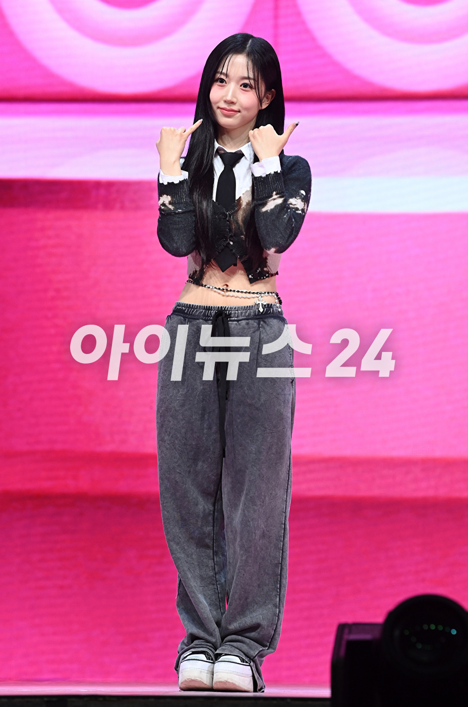 그룹 엔믹스(NMIXX) 해원이 20일 오후 서울 광진구 예스24라이브홀에서 열린 첫 번째 미니앨범 '엑스페르고'(expergo) 발매 기념 쇼케이스에서 포즈를 취하고 있다. 타이틀곡 '러브 미 라이크 디스'는