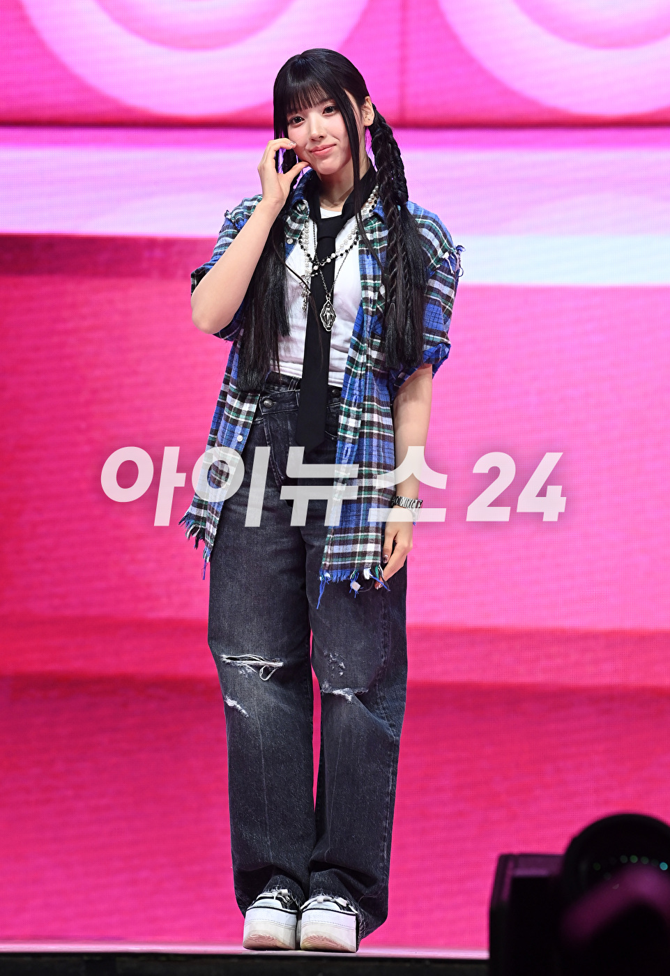 그룹 엔믹스(NMIXX) 지우 20일 오후 서울 광진구 예스24라이브홀에서 열린 첫 번째 미니앨범 '엑스페르고'(expergo) 발매 기념 쇼케이스에서 포즈를 취하고 있다.