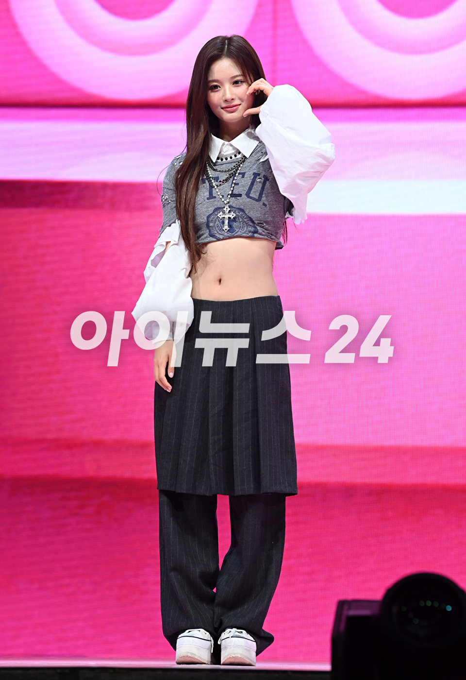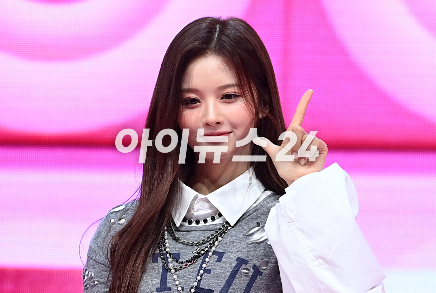 그룹 엔믹스(NMIXX) 설윤이 20일 오후 서울 광진구 예스24라이브홀에서 열린 첫 번째 미니앨범 '엑스페르고'(expergo) 발매 기념 쇼케이스에서 포즈를 취하고 있다.