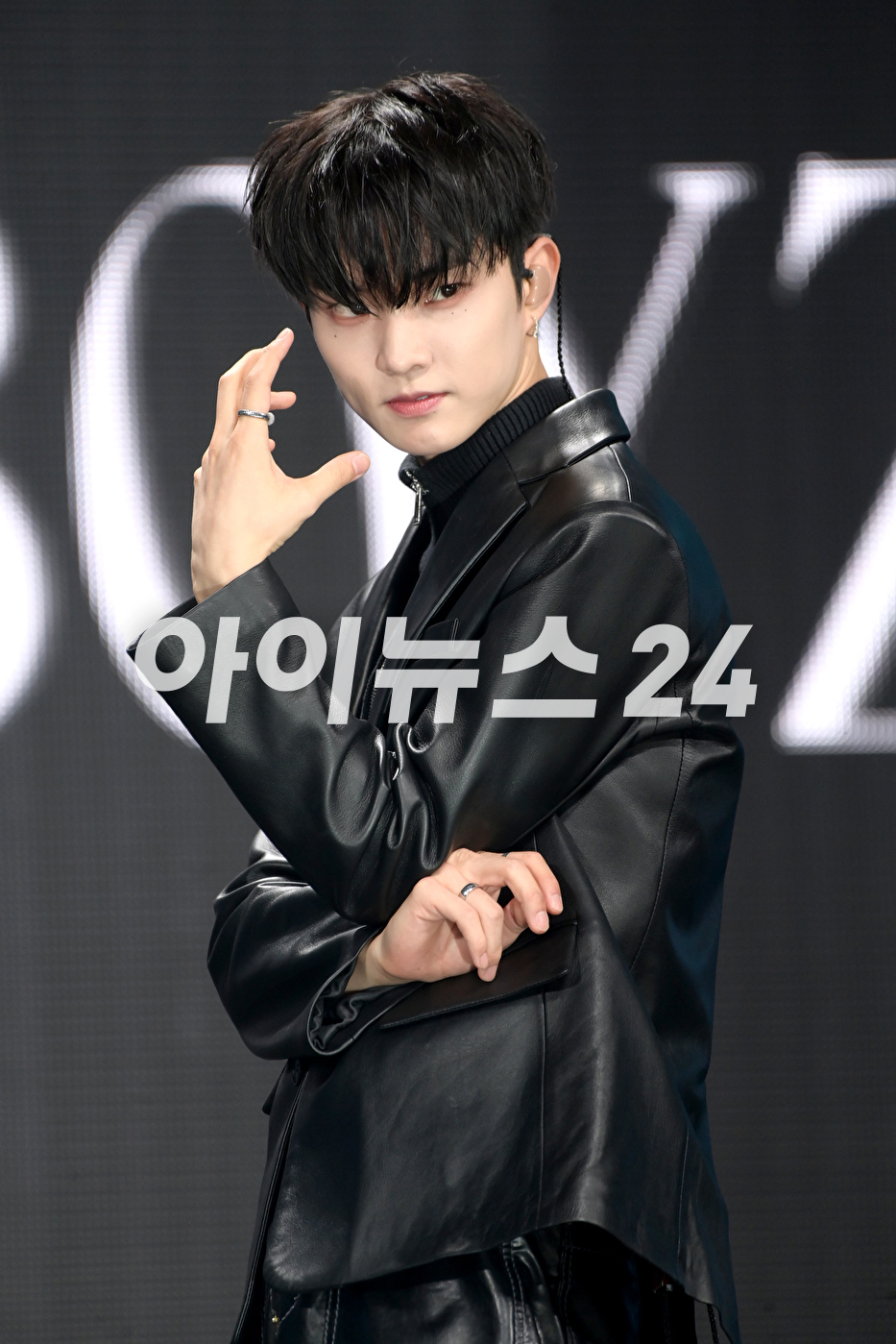 그룹 더보이즈 큐가 20일 오후 서울 광진구 예스24라이브홀에서 진행된 더보이즈(THE BOYZ) 여덟 번째 미니앨범 '비 어웨이크(BE AWAKE)' 발매 기념 쇼케이스에 참석하고 있다. 타이틀곡 '로어(ROAR)'는