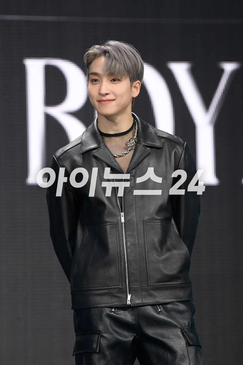 그룹 더보이즈 상연이 20일 오후 서울 광진구 예스24라이브홀에서 진행된 더보이즈(THE BOYZ) 여덟 번째 미니앨범 '비 어웨이크(BE AWAKE)' 발매 기념 쇼케이스에 참석해 포즈를 취하고 있다. 타이틀곡