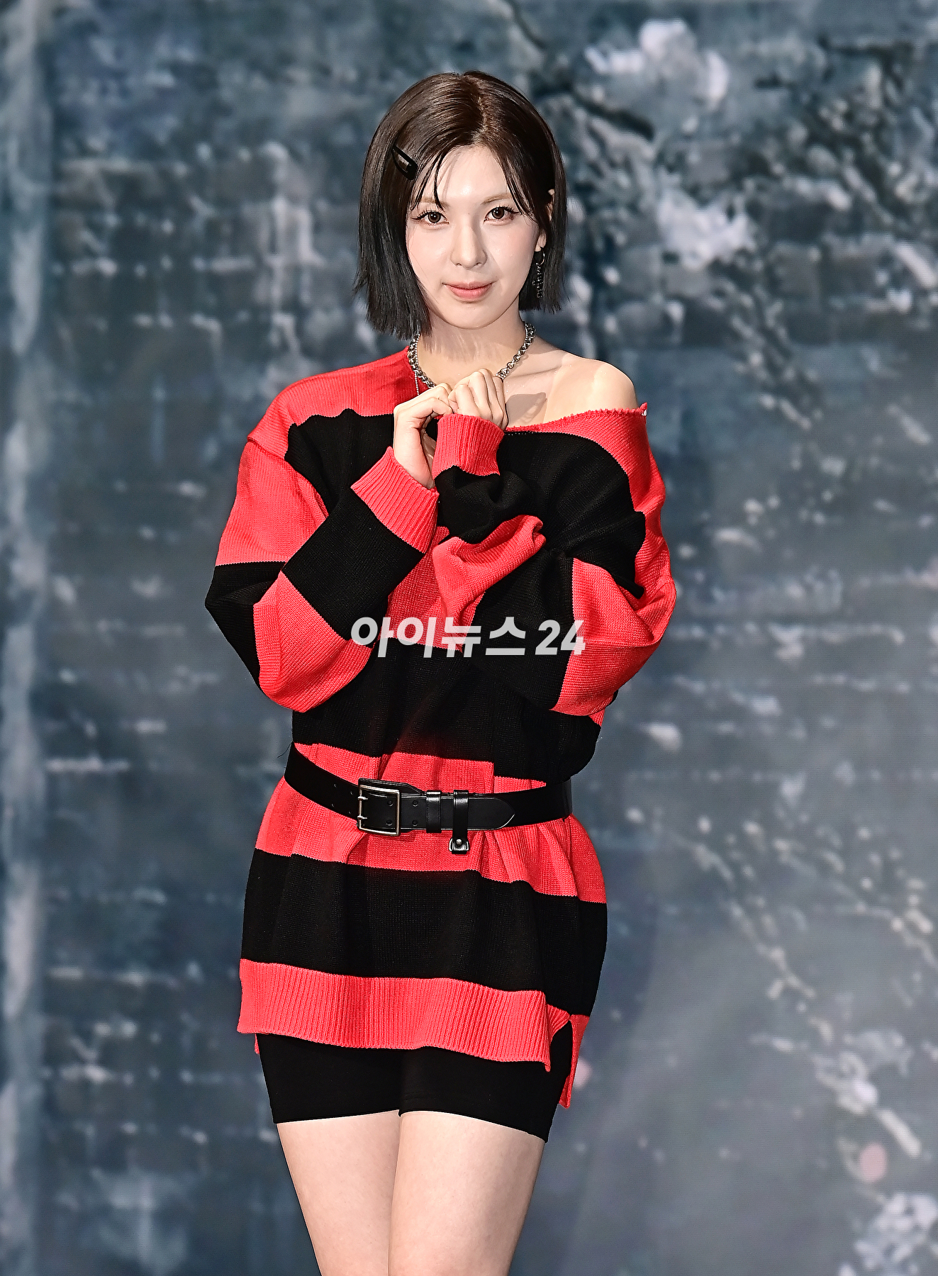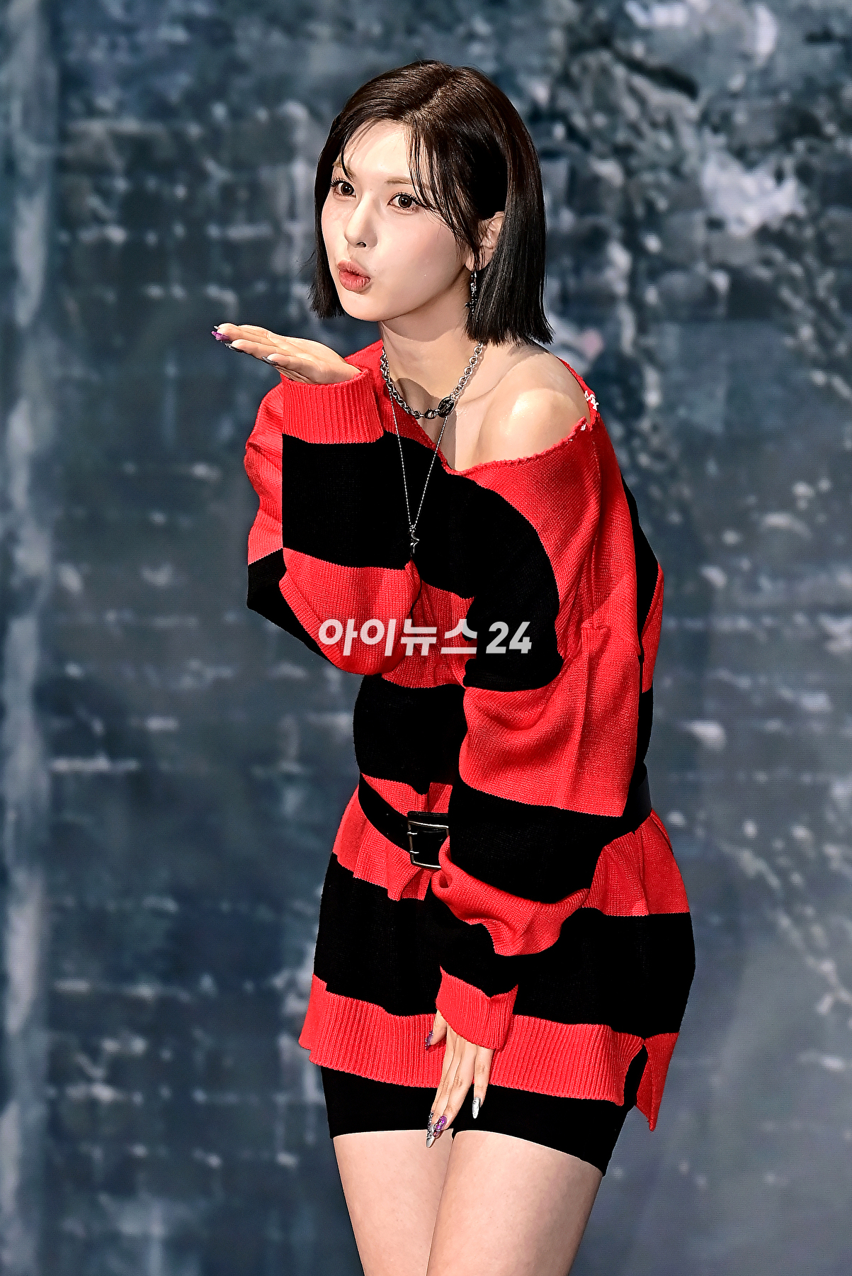 걸그룹 엔믹스 배이가 15일 오후 서울 송파구 소피텔 앰배서더 서울 호텔에서 새 미니 앨범 'Fe3O4: BREAK'(에프이쓰리오포: 브레이크)를 발매 기념 쇼케이스에서 기념촬영을 하고 있다.