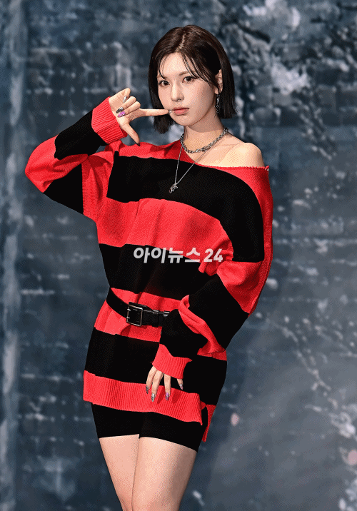 걸그룹 엔믹스 배이가 15일 오후 서울 송파구 소피텔 앰배서더 서울 호텔에서 새 미니 앨범 'Fe3O4: BREAK'(에프이쓰리오포: 브레이크)를 발매 기념 쇼케이스에서 기념촬영을 하고 있다.