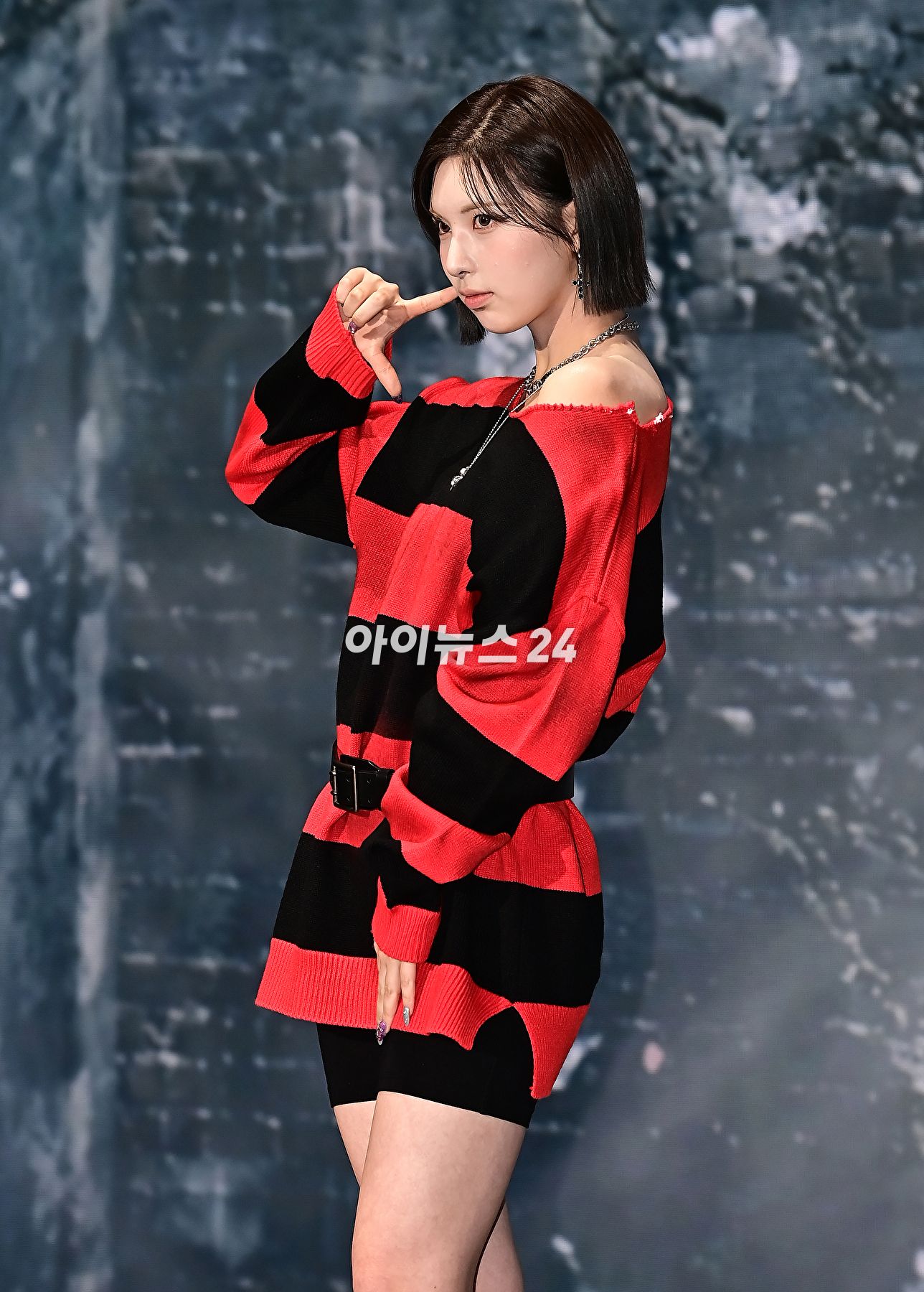 걸그룹 엔믹스 배이가 15일 오후 서울 송파구 소피텔 앰배서더 서울 호텔에서 새 미니 앨범 'Fe3O4: BREAK'(에프이쓰리오포: 브레이크)를 발매 기념 쇼케이스에서 기념촬영을 하고 있다.