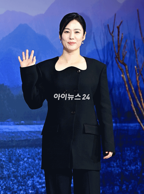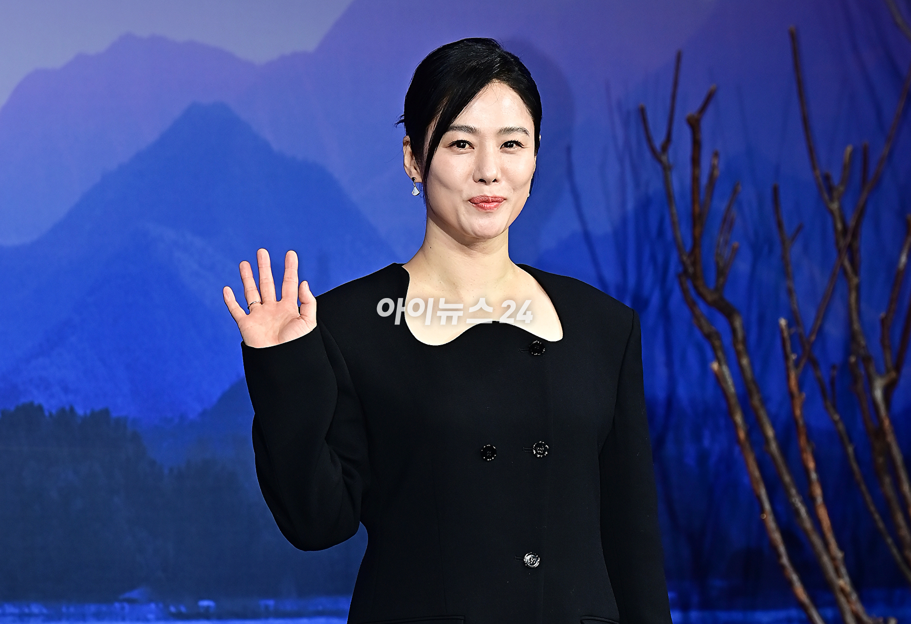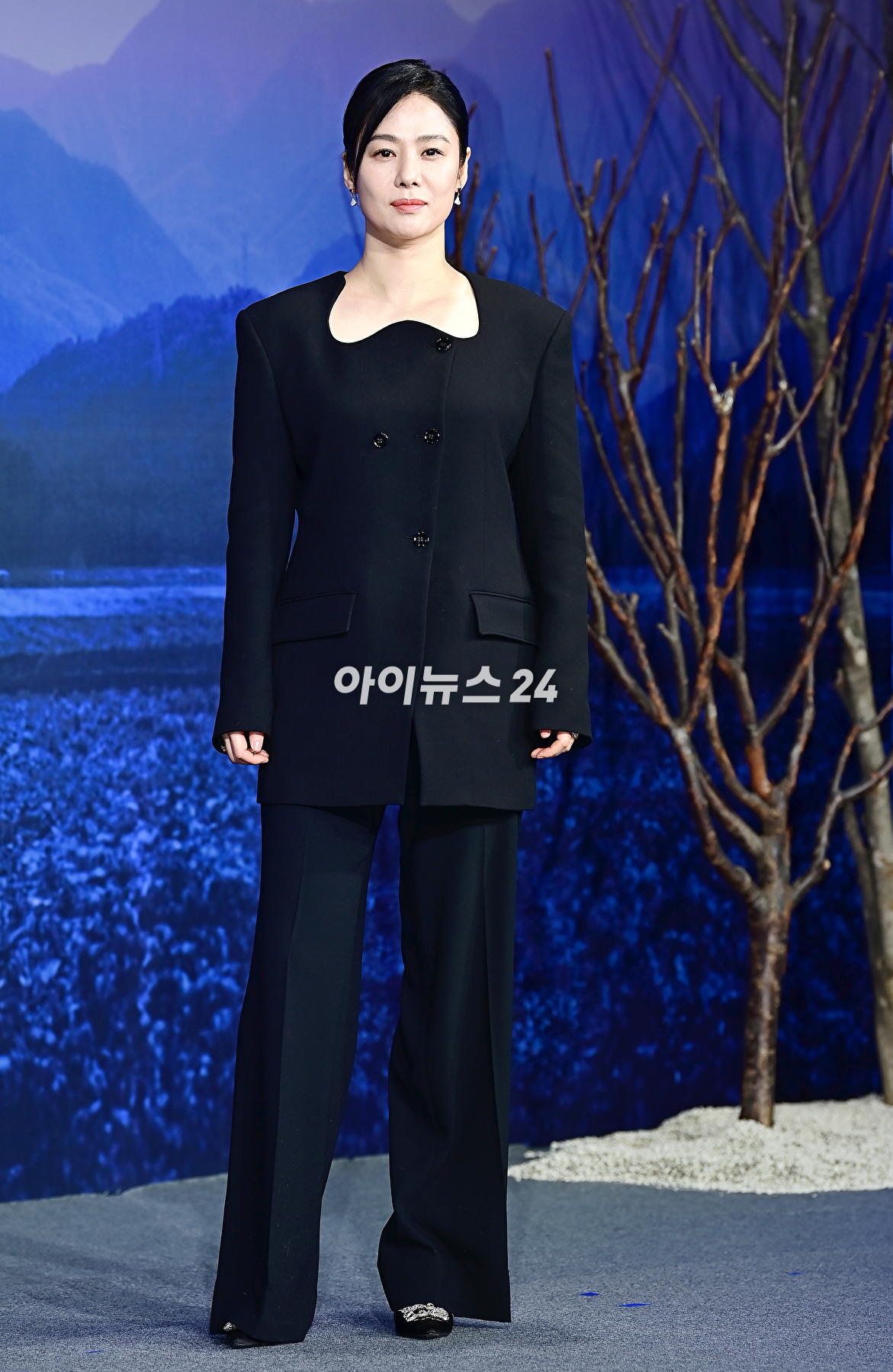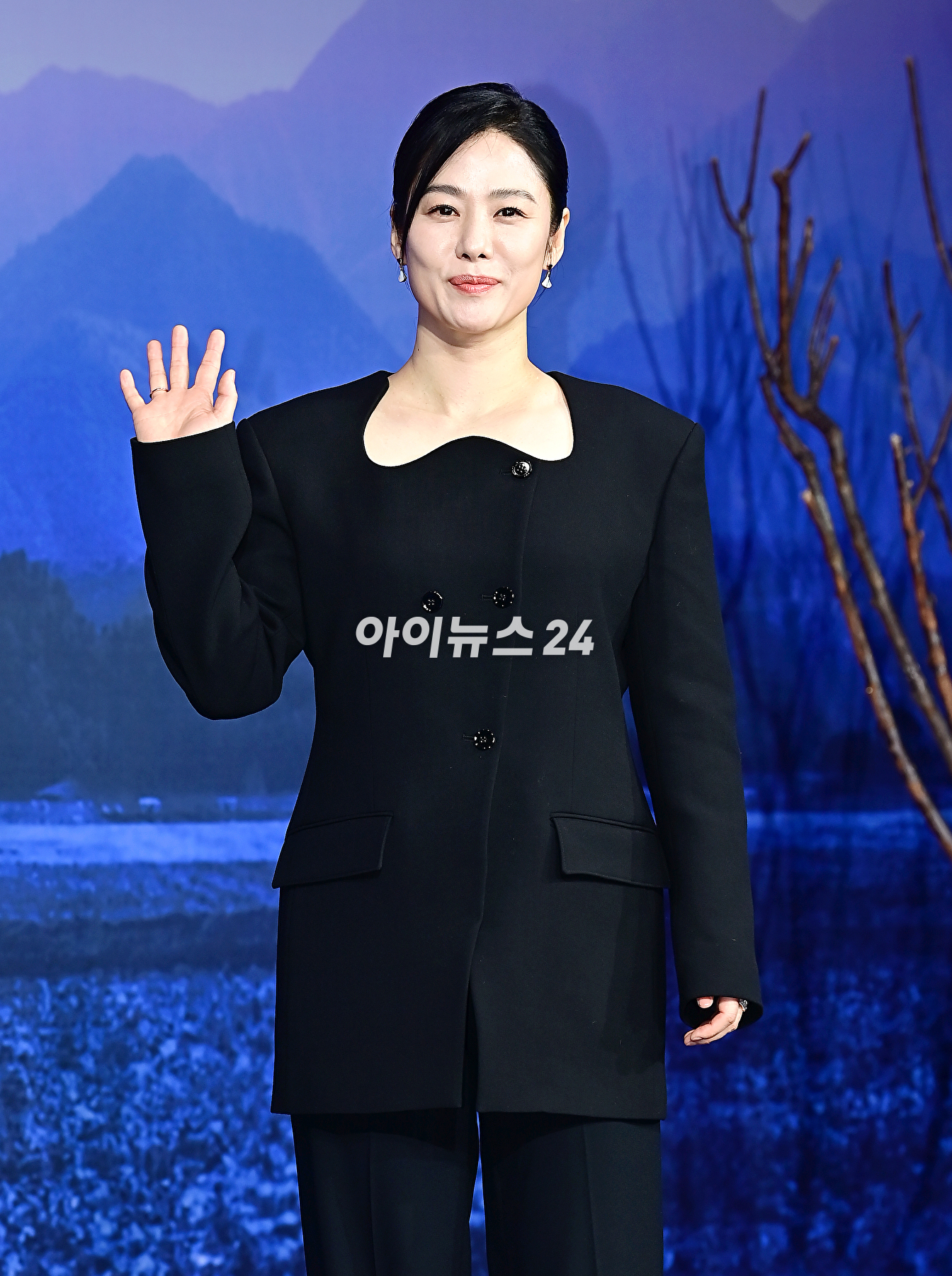 배우 김현주가 12일 오후 서울 중구 엠배서더 서울 풀만에서 열린 넷플릭스 '선산' 제작발표회에서 기념촬영을 하고 있다.