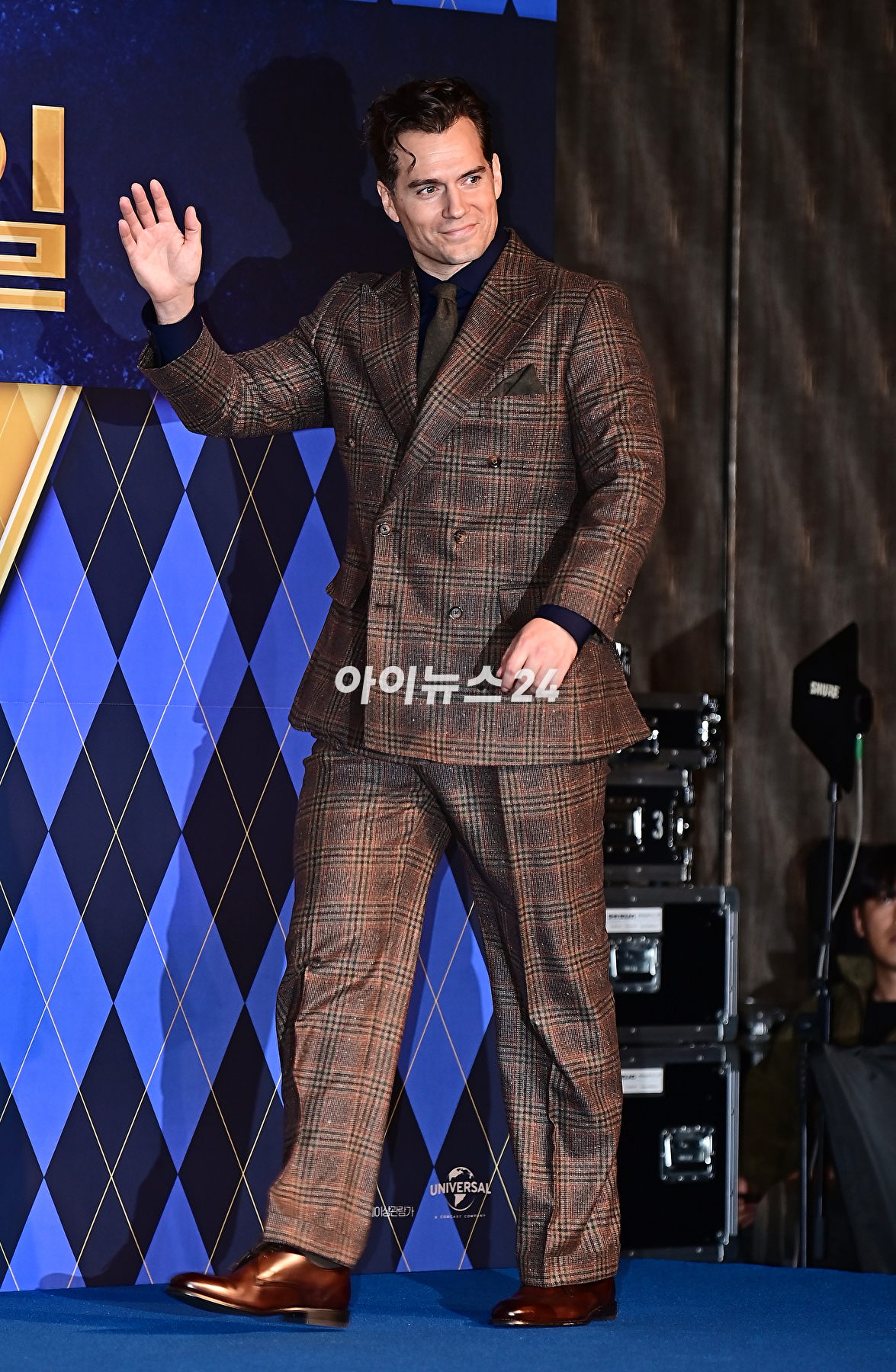 배우 헨리 카빌이 18일 오전 서울 종로구 광화문 포시즌스호텔에서 열린 영화 '아가일' 내한기념 기자간담회에 참석해 포즈를 취하고 있다.