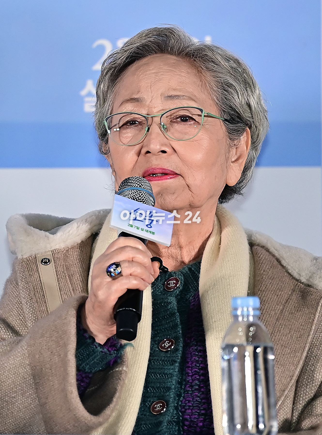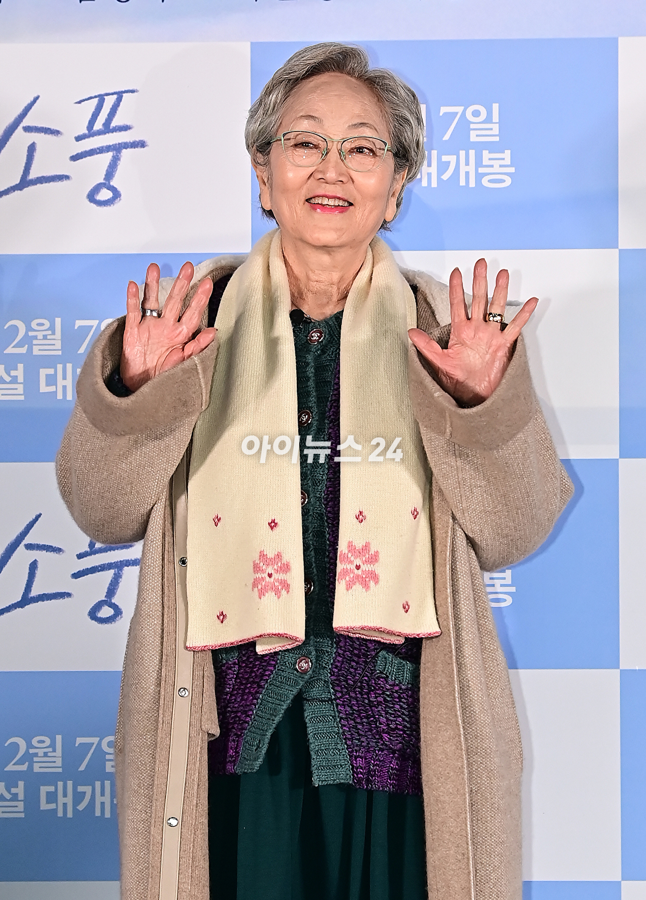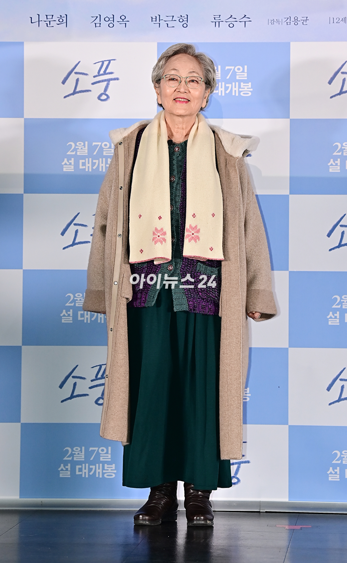 배우 김영옥이 23일 오후 서울 광진구 롯데시네마 건대입구에서 열린 영화 '소풍' 언론시사회에서 포토타임을 갖고 있다.